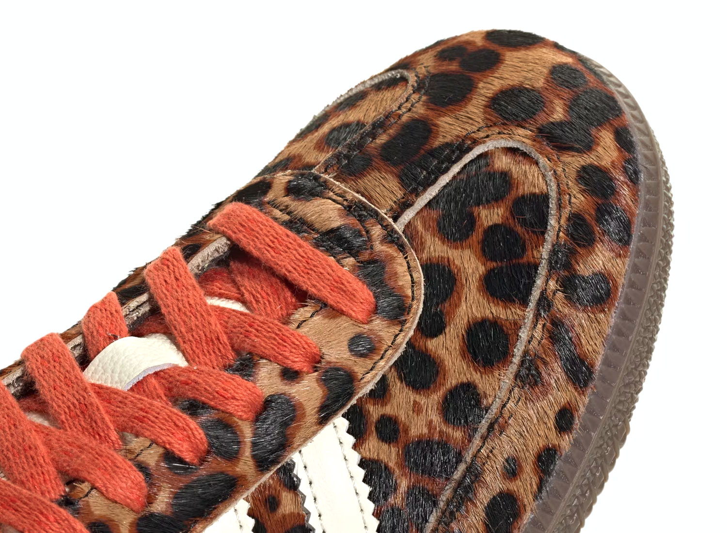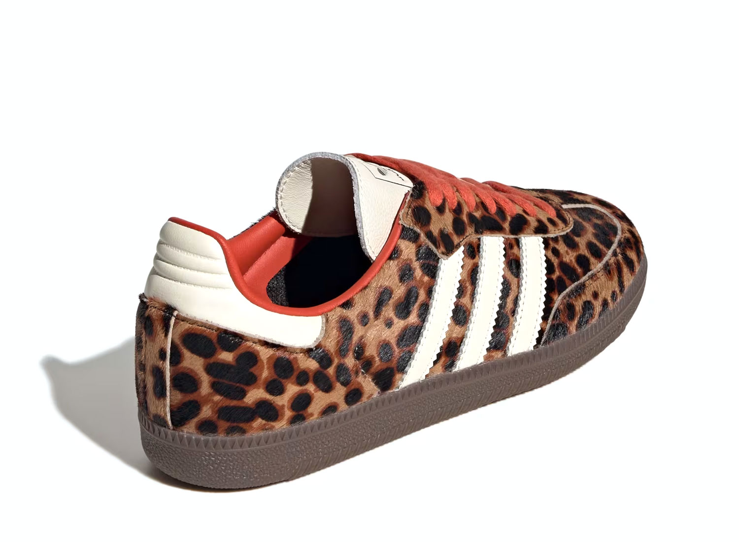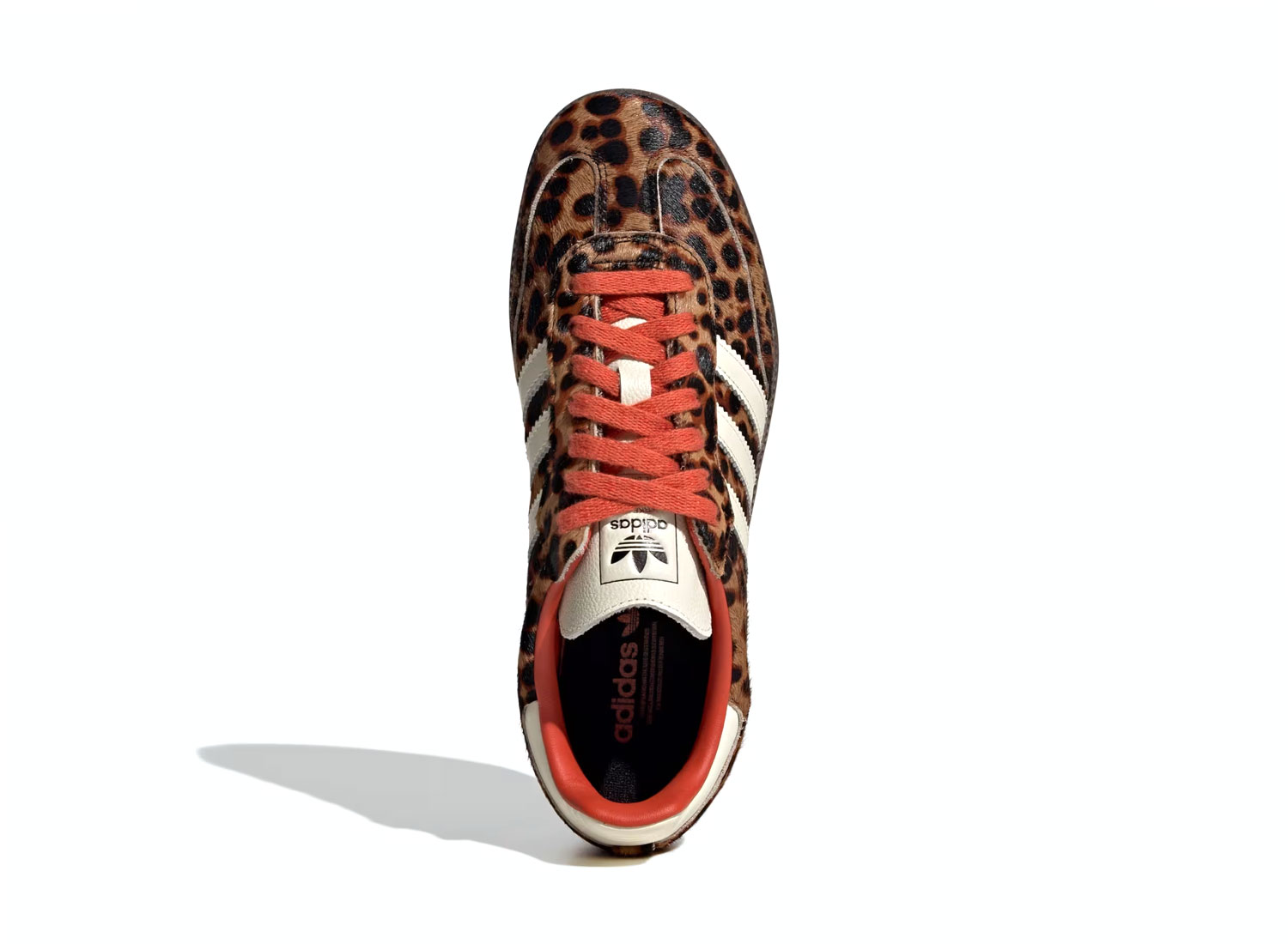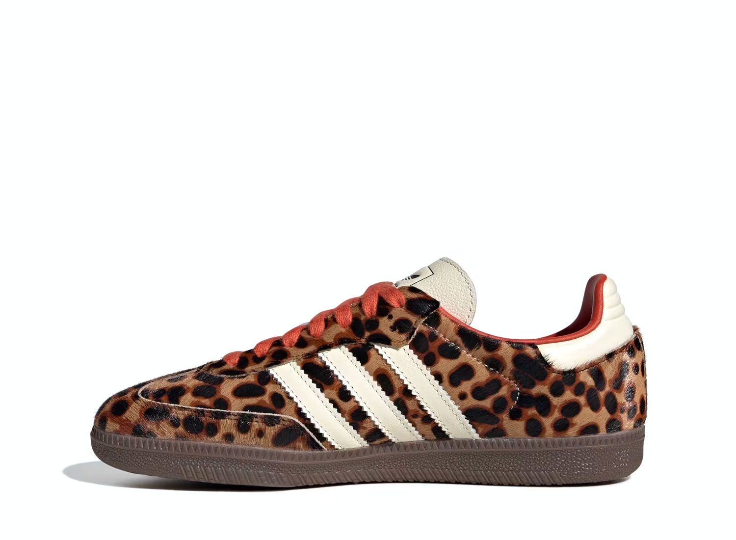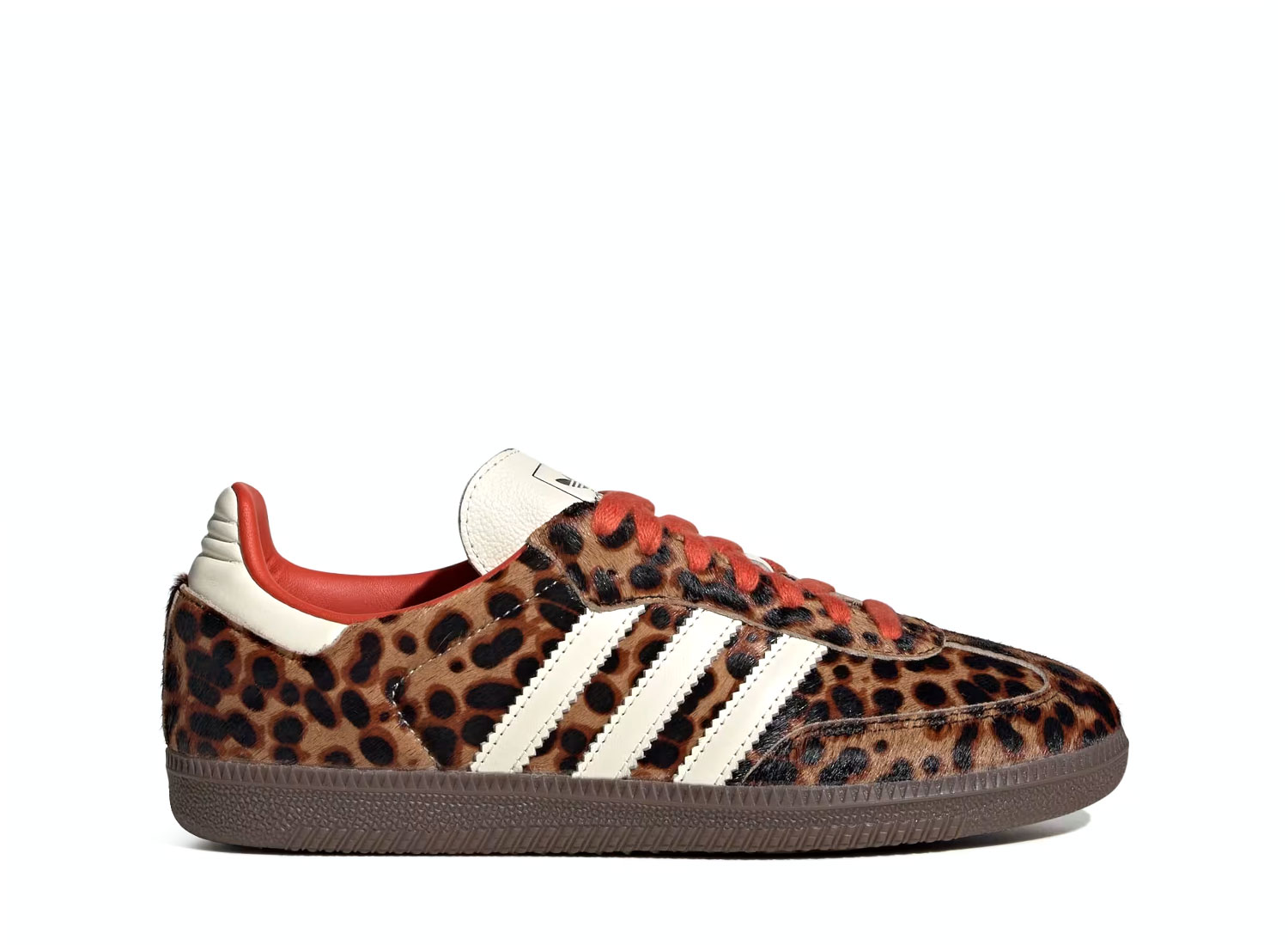 ADIDAS ORIGINALS Samba OG Brown / Preloved Red / Cream White JI2734. The iconic SAMBA OG is back! Pony hair upper with all-over leopard print. Leather inserts. Rubber sole.