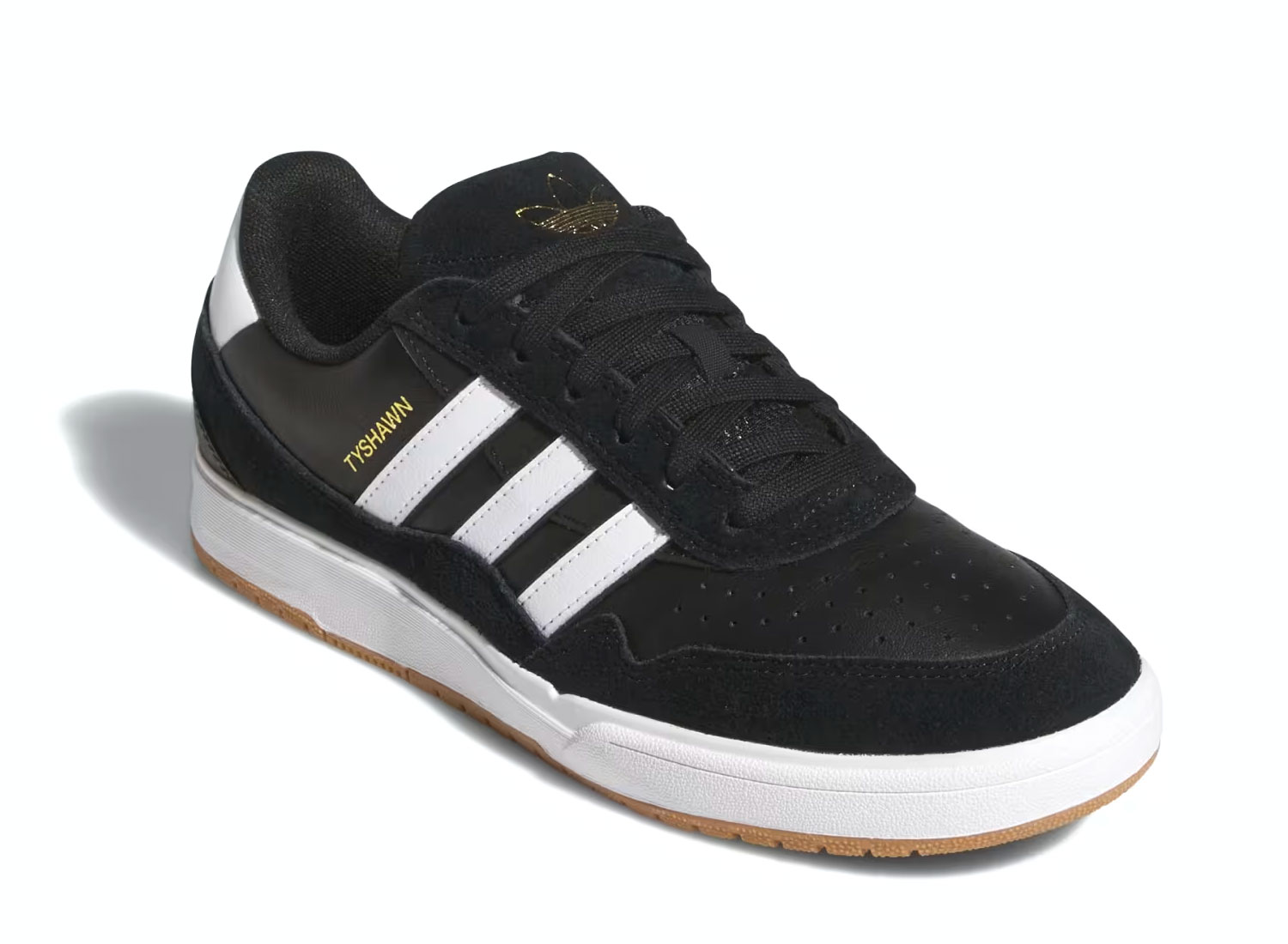 ADIDAS ORIGINALS Skateboarding Tyshawn II Core Black / Cloud White / Gum JI0846. Signature skate-inspired style. Double-layer front panel + perforations for durability and breathability. Cupsole design with multidirectional pattern for better traction and cushioning. Combination of leather, suede, and synthetic elements.