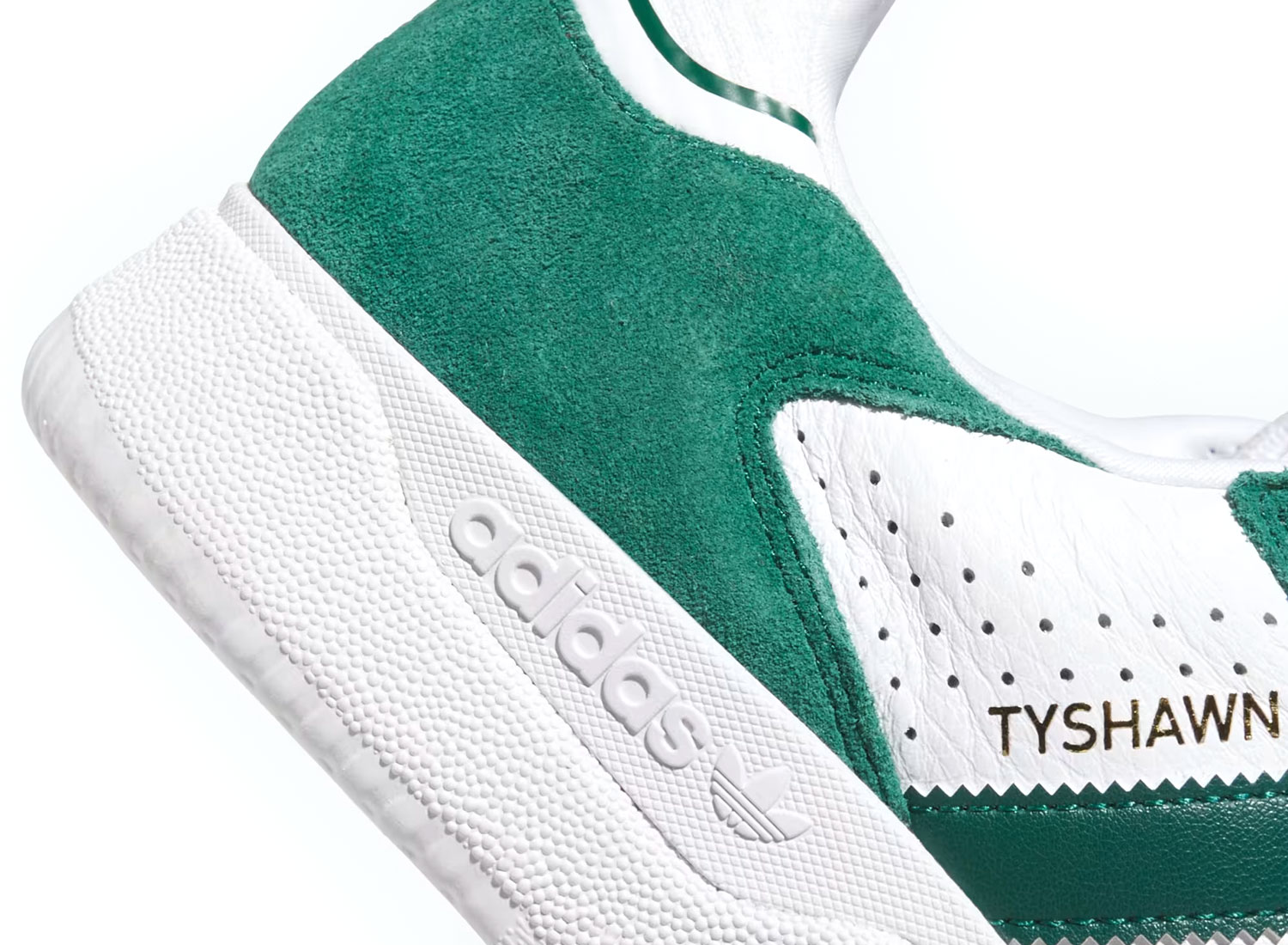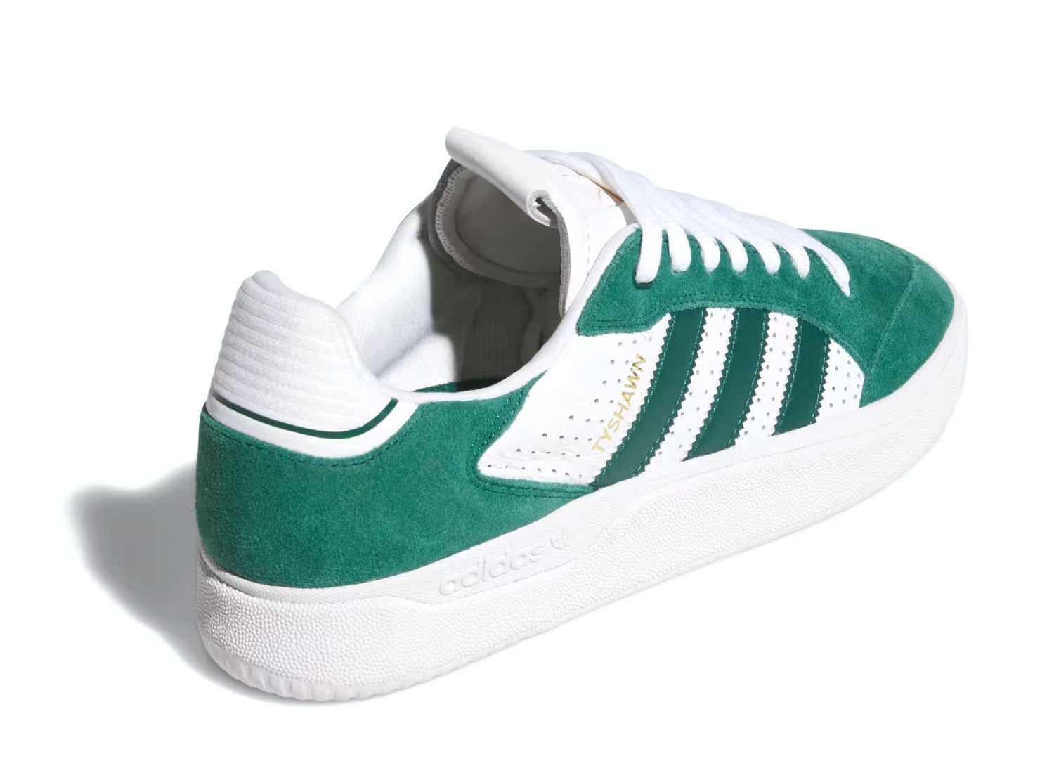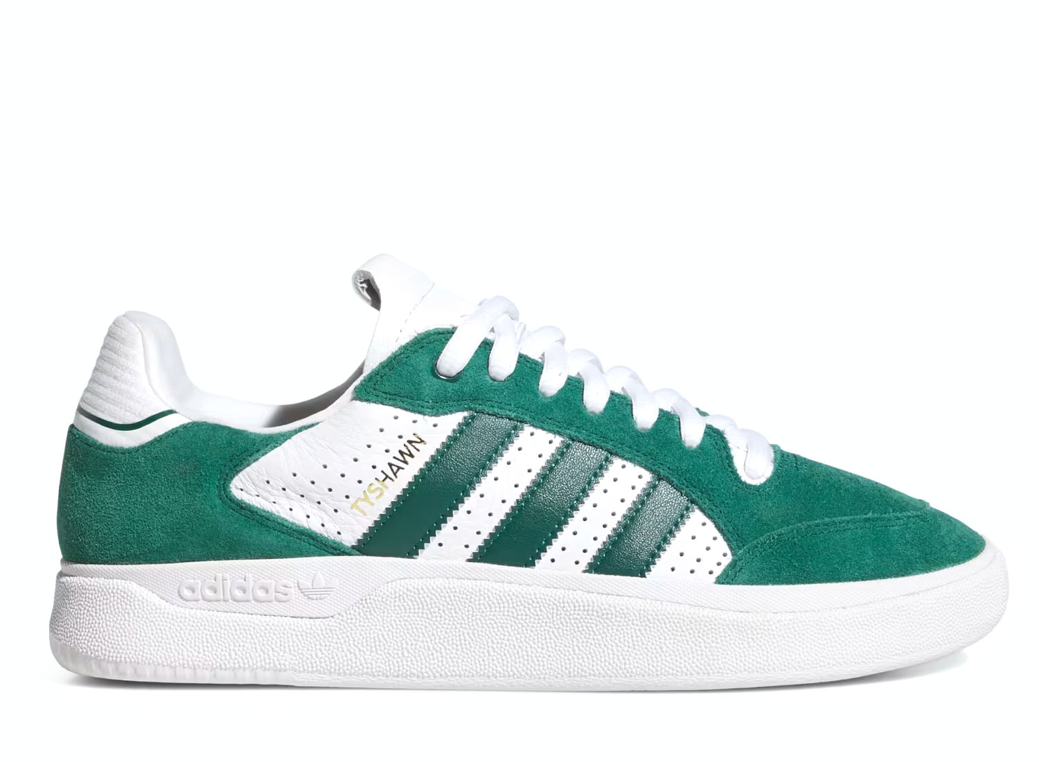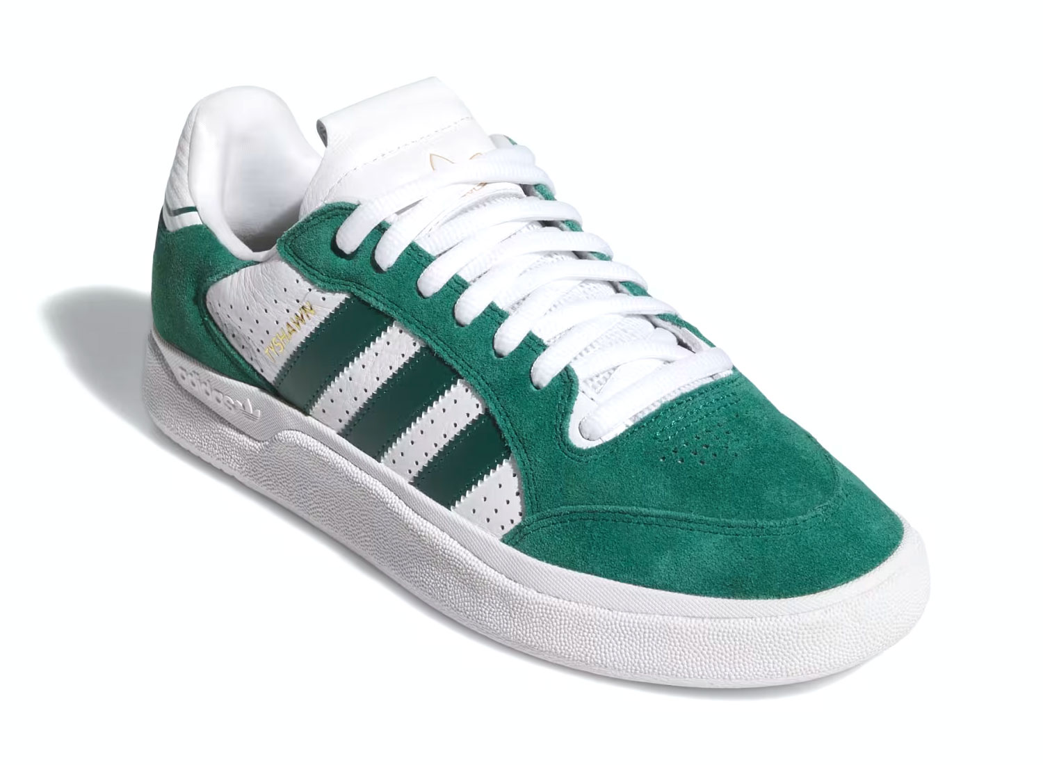 Skateboarding Tyshawn Low Collegiate Green / Collegiate Green / Cloud White JQ1138. Signature design by Tyshawn Jones, perfect for skateboarding and an urban look. Durable, breathable upper for lasting comfort. Rubber cupsole for excellent grip and impact absorption. EVA cushioning for optimal comfort for everyday wear and skateboarding.
