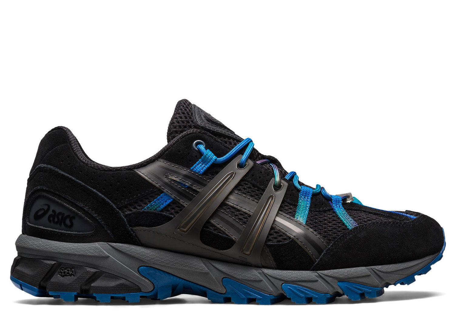 ASICS x A.P.C. Gel-Sonoma 15-50 Black 1203A226-001. Very nice collaboration between Asics and A.P.C. on the outdoor model, the SONOMA 15-50. Mesh upper topped with suede inserts and tie-dye printed canvas lace-up inserts. Very limited quantities.