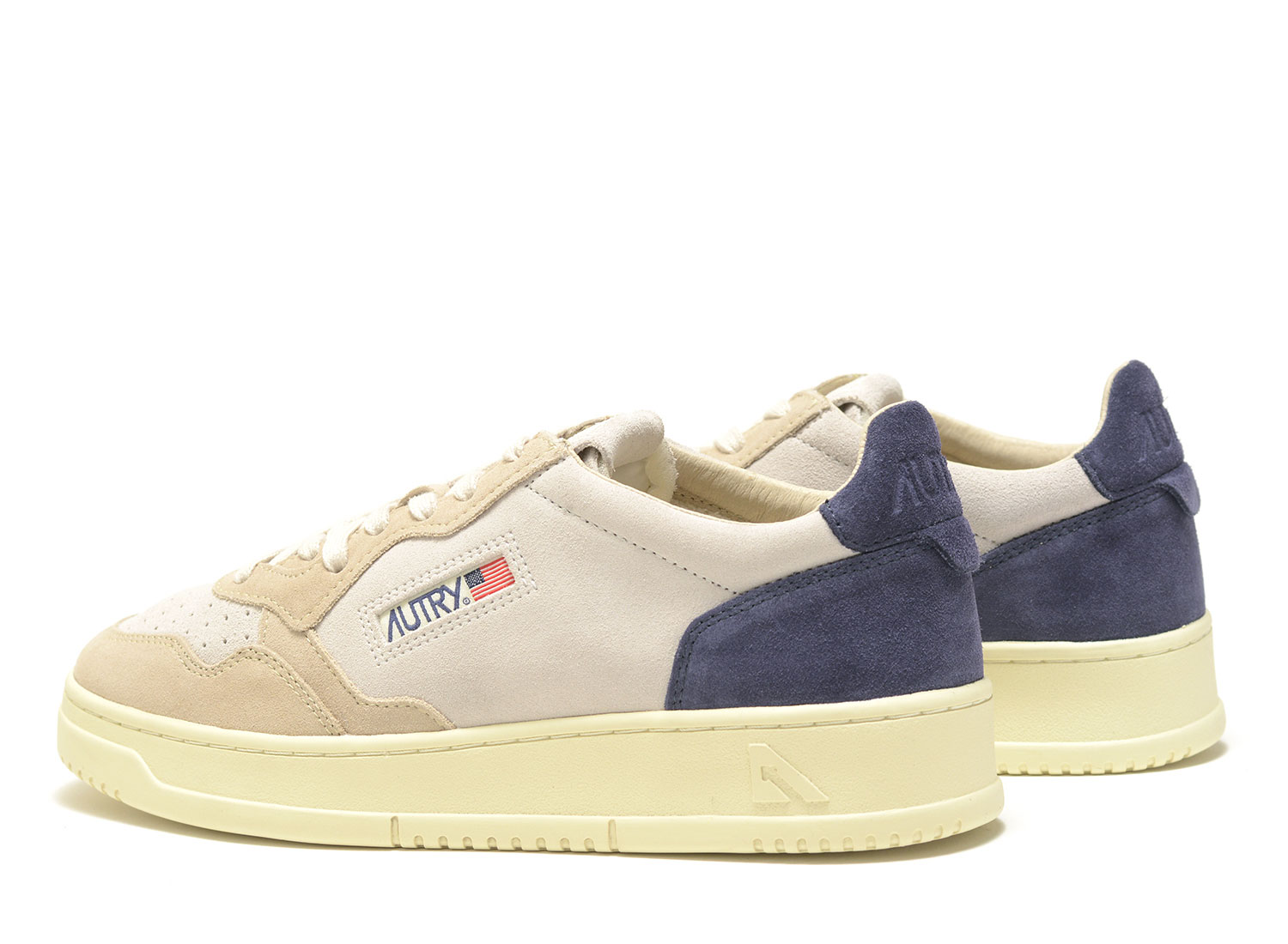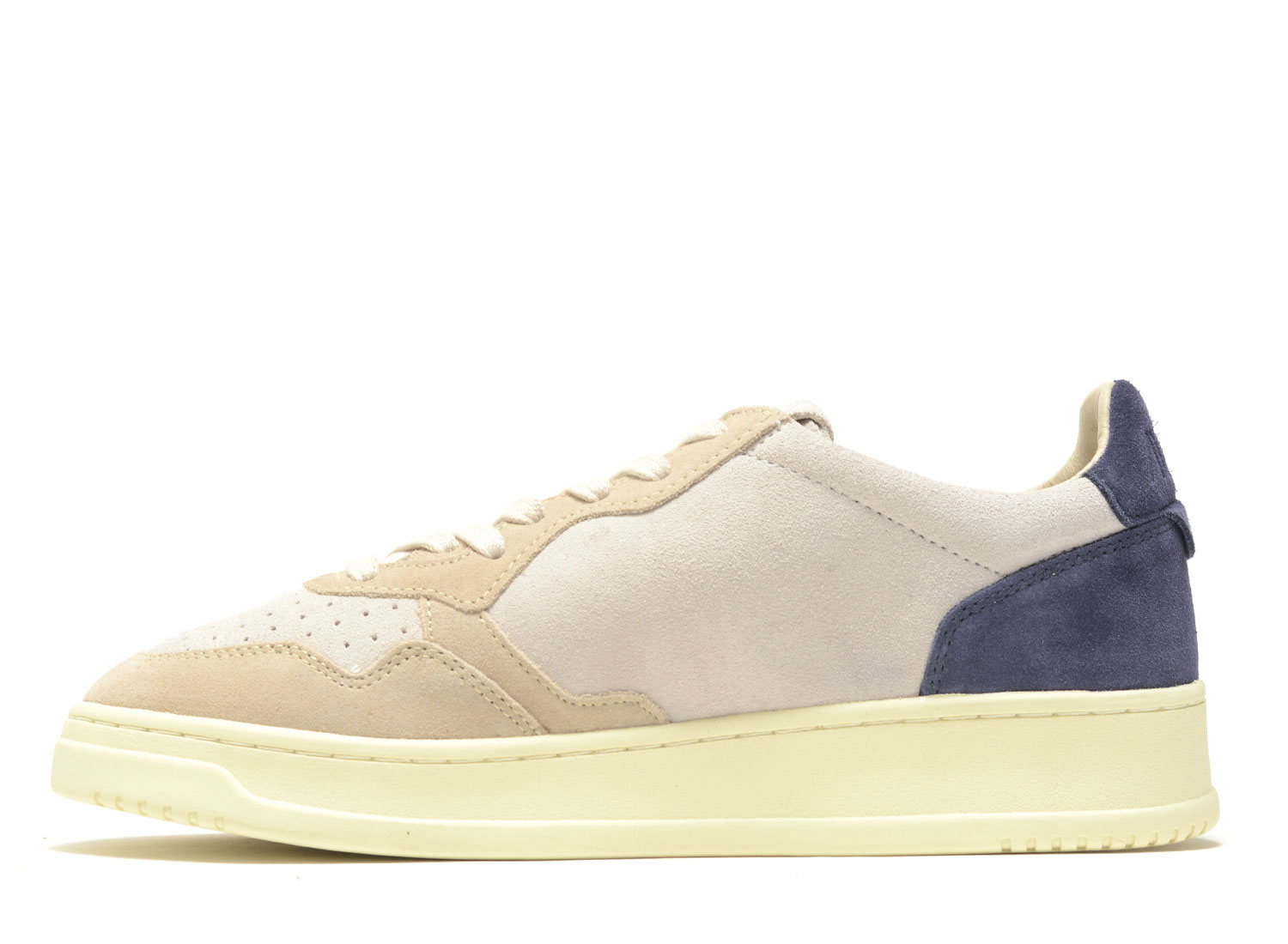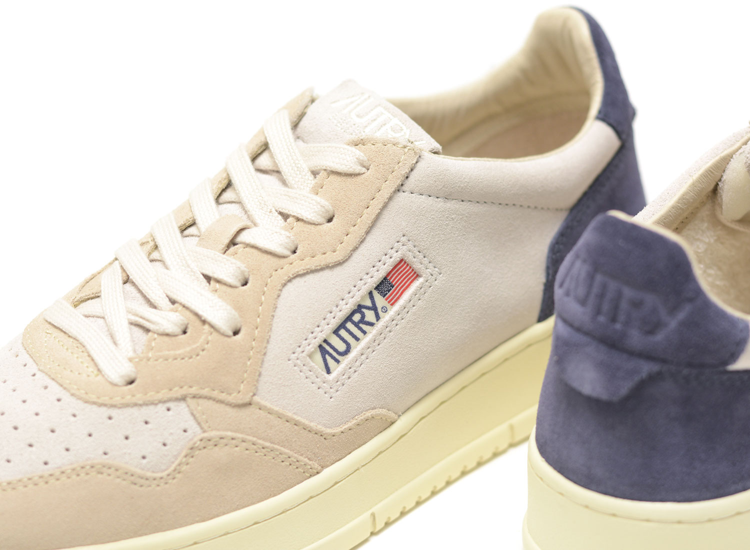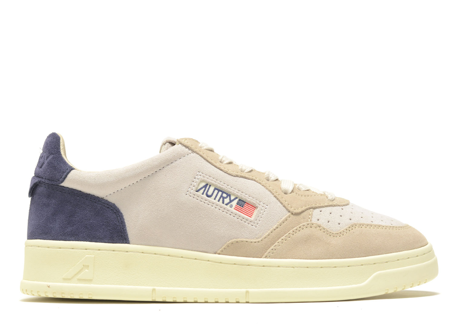 AUTRY Medalist Low TS29 Tricolor Suede Sand / Blue. Premium suede upper. Leather heel. Vanilla sole and laces for a vintage look. Ultra comfortable.