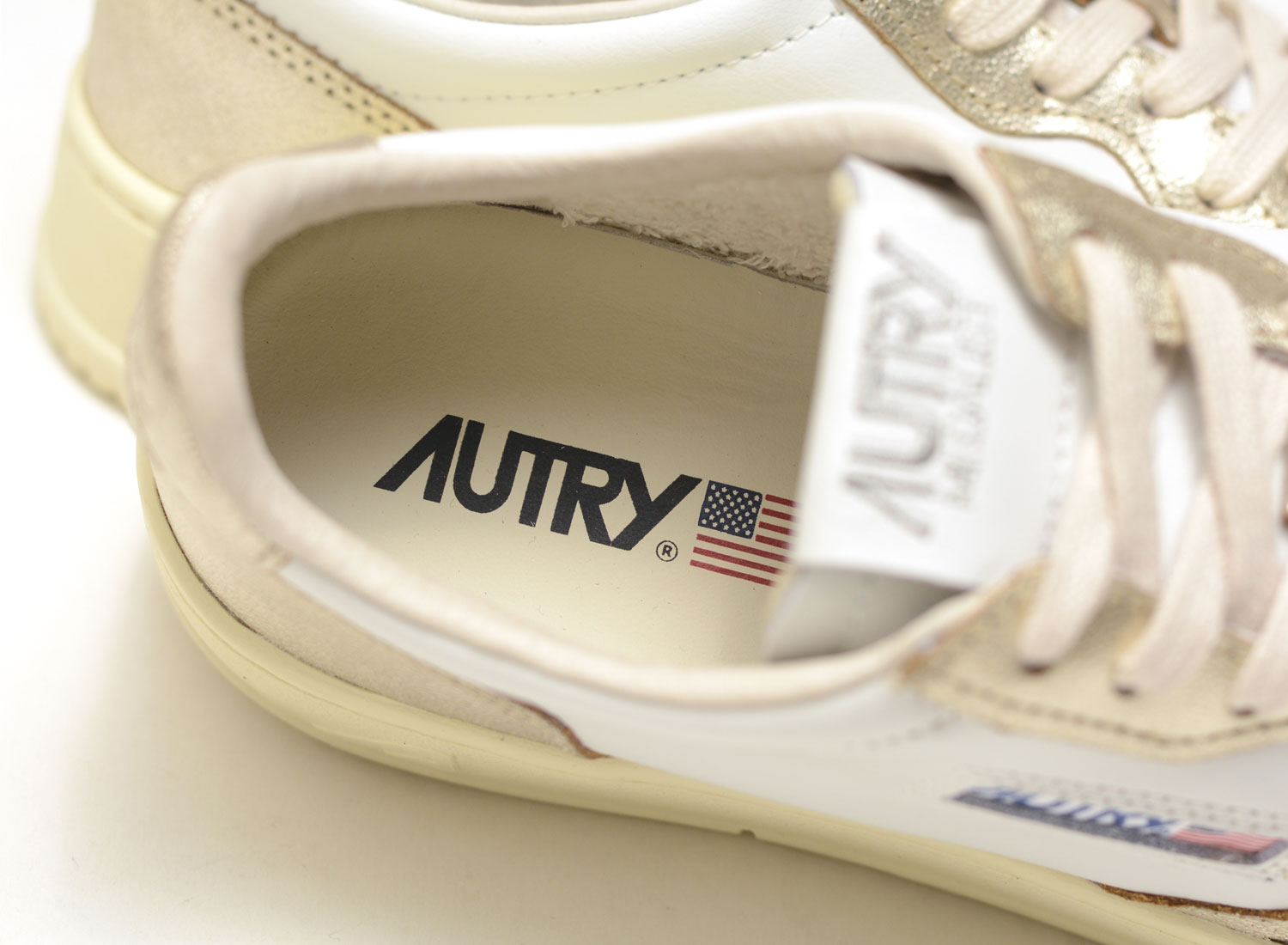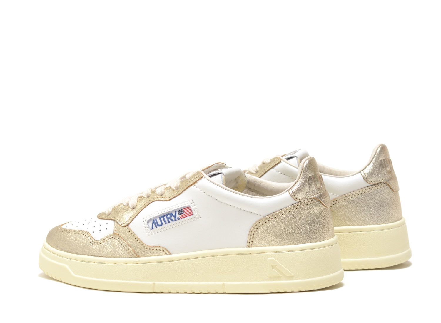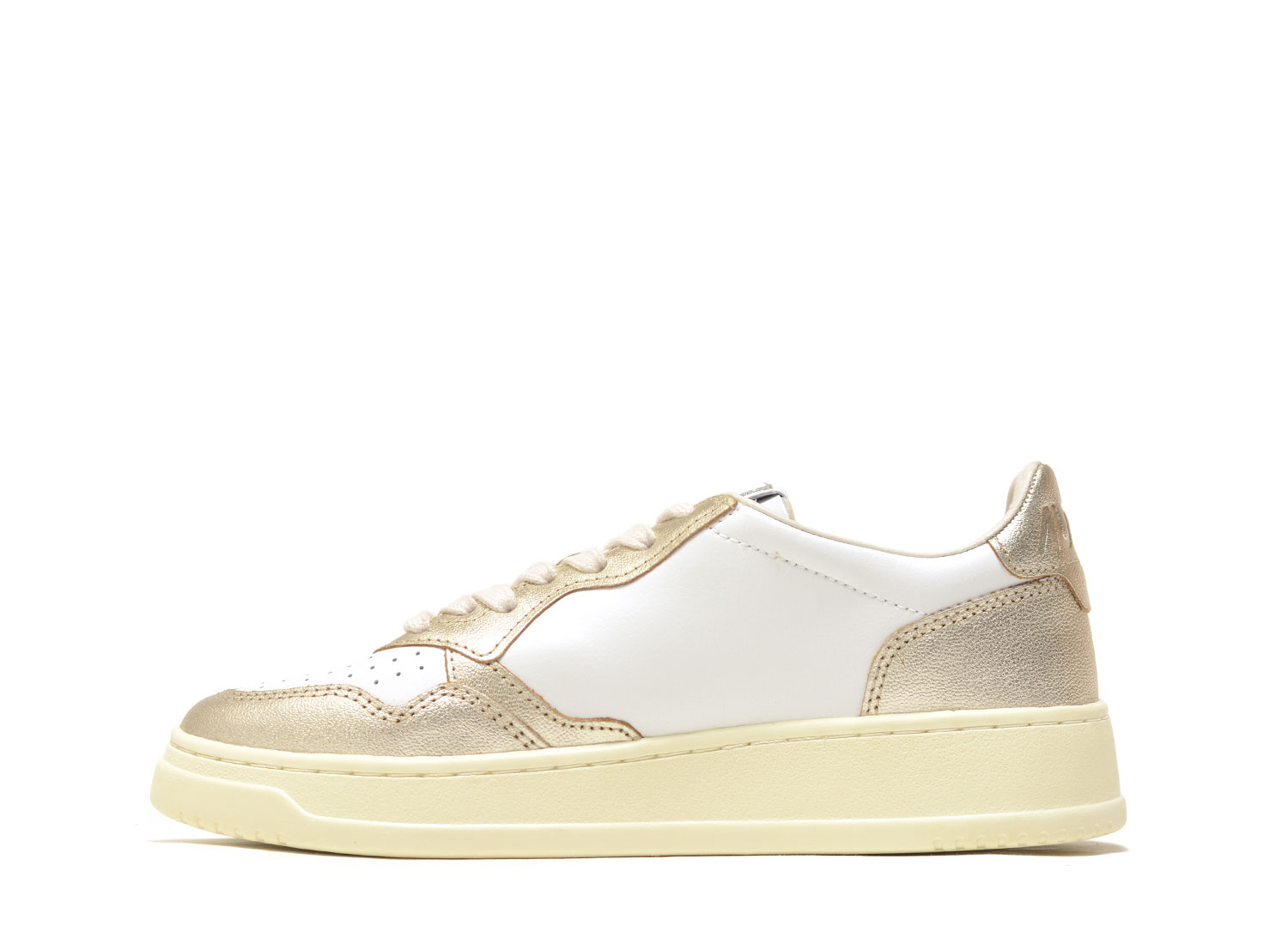 AUTRY Medalist Low WB16 Leather White / Platinum. Reissue of the historic 01 tennis shoe. Two-tone premium leather upper. Vanilla sole and laces for a vintage look. Ultra comfortable.