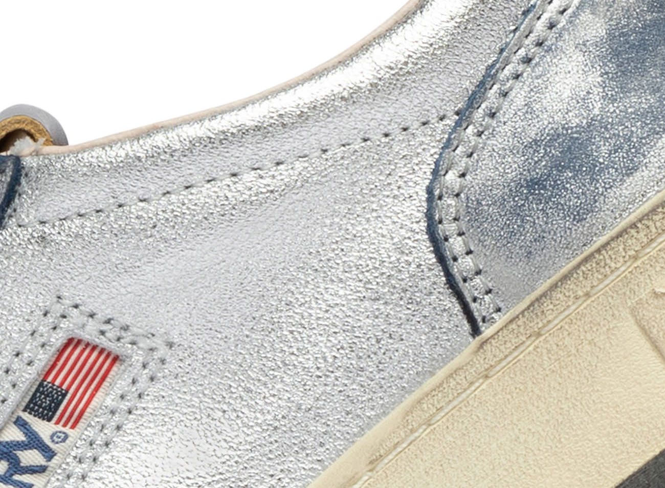 AUTRY Super Vintage Low MH03 Laminated / Scratches Silver / Sky. Retro silhouette with a distressed look. Premium leather upper. Supervintage range. Ultra comfortable.