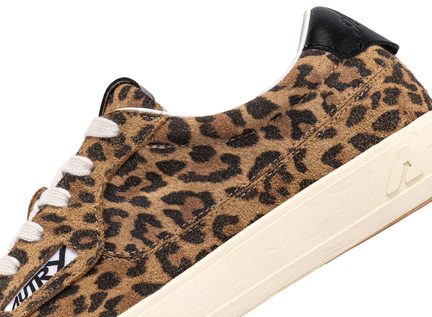 Suede upper with all-over leopard pattern.