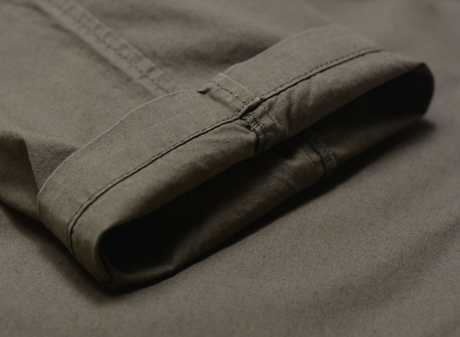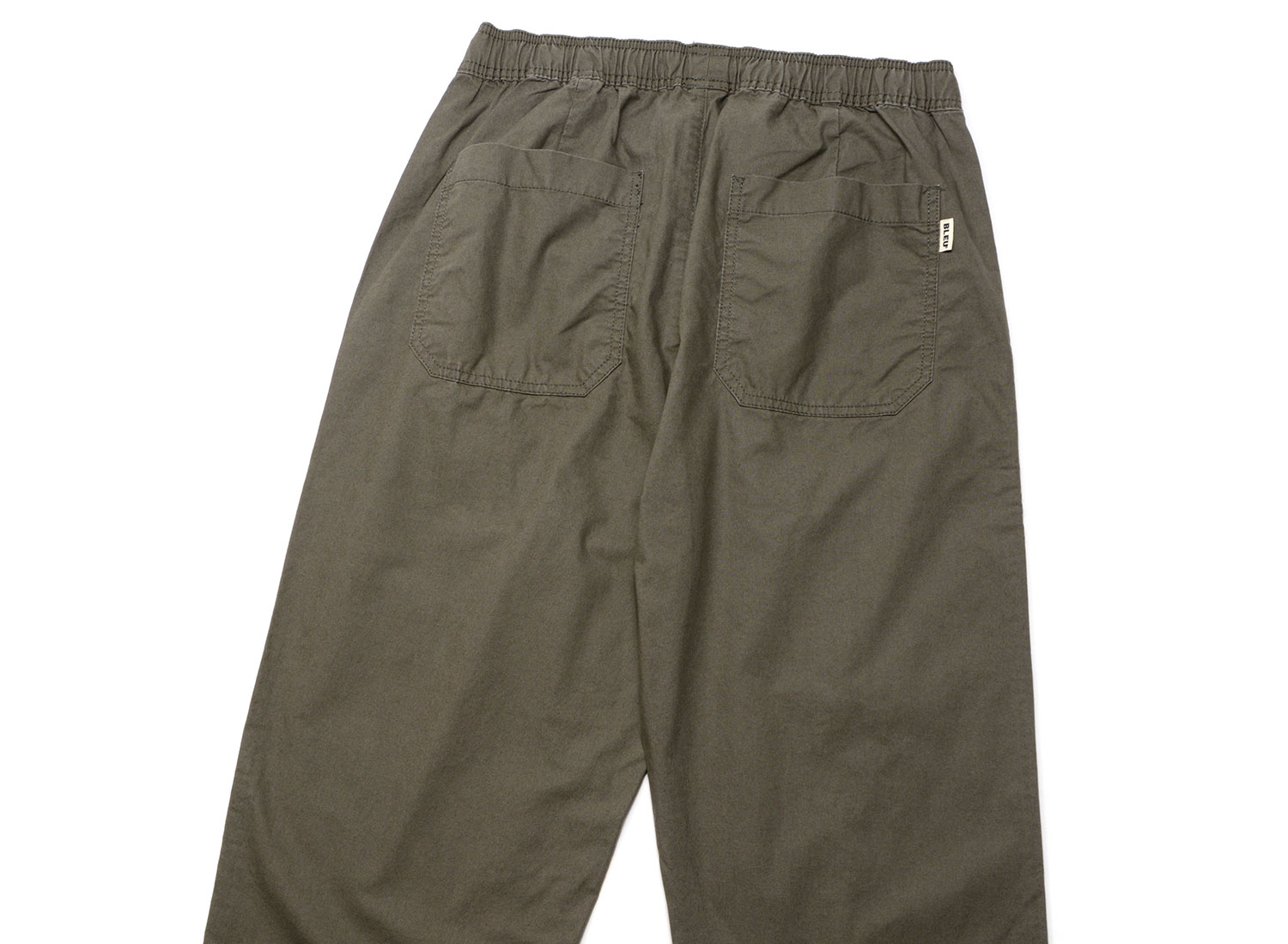 BLEU Relaxed Pants Olive. Casual canvas pants with a loose fit, slightly tapered at the bottom. Large front pockets. Patch pockets at the back. Adjustable elastic waistband.