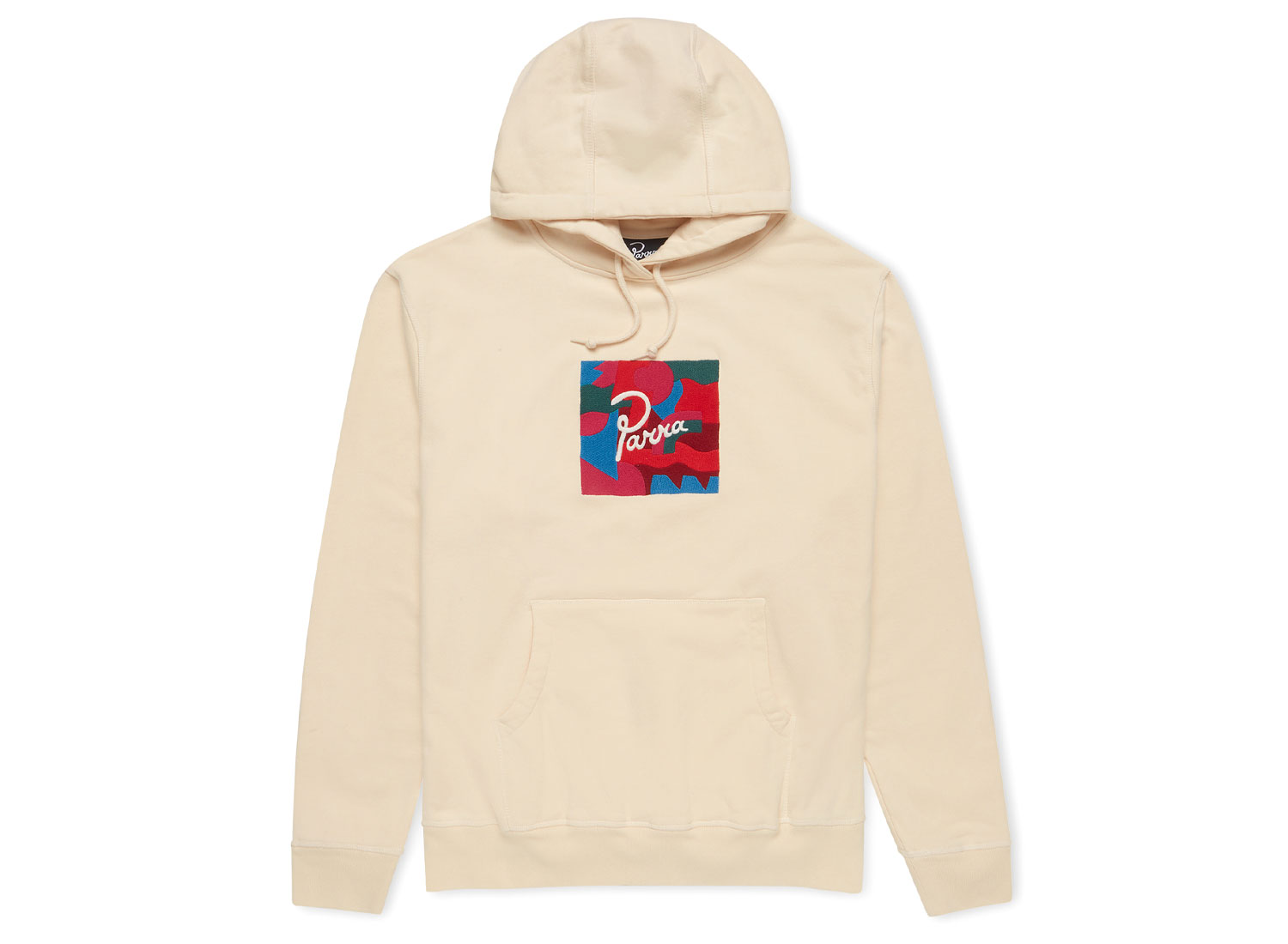 BY PARRA Abstract Shapes Hooded Sweatshirt White. Hooded sweatshirt made from super soft fleece. Regular fit. Parra embroidery on the front. Kangaroo pocket on the front. Ribbed cuffs and hem.