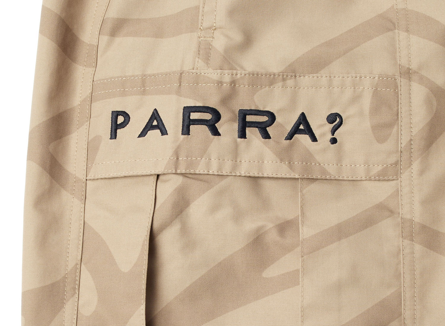 Relaxed fit Side cargo pockets PARRA embroidery on right pocket. Drawstring waist.