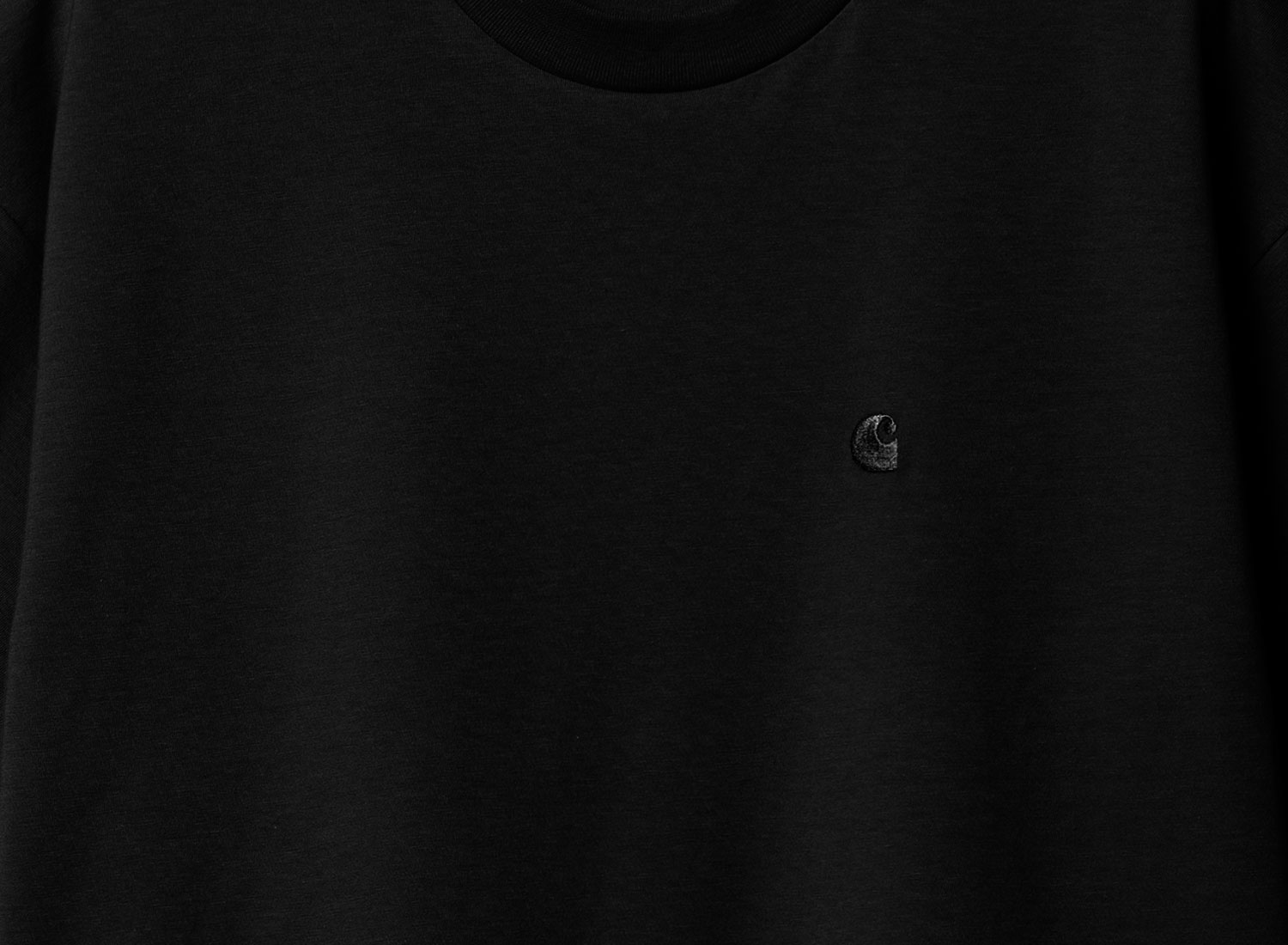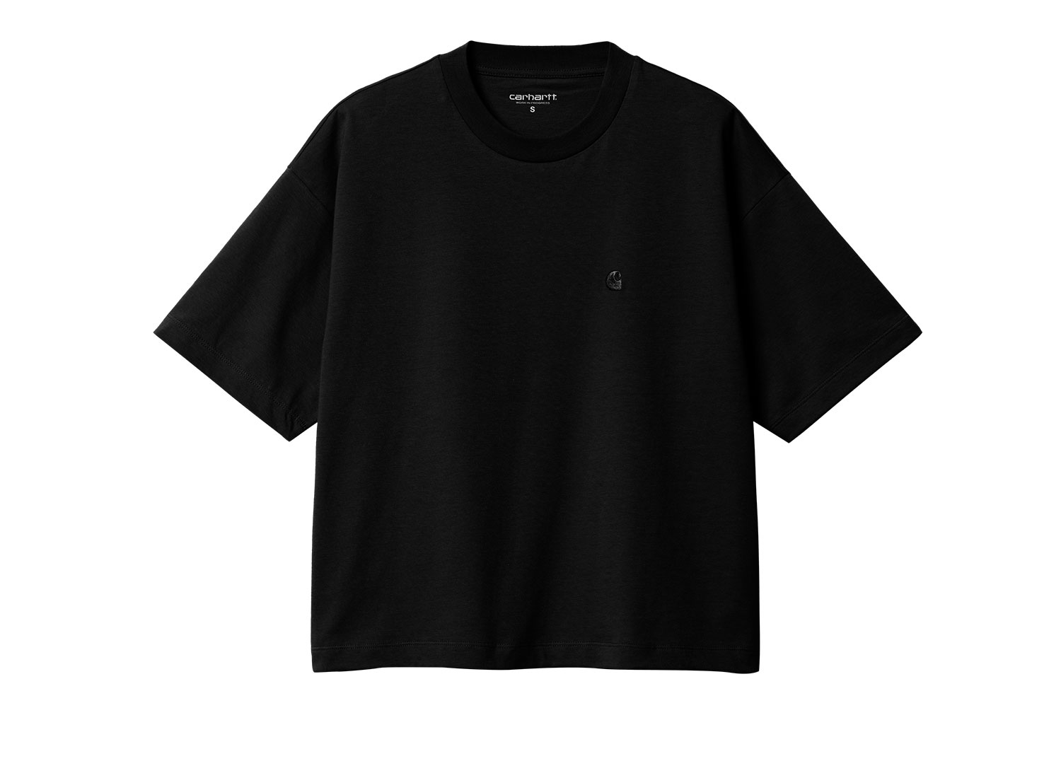CARHARTT WIP W Chester Tshirt Black I030656. Women's t-shirt made from lightweight organic cotton jersey. 100% cotton. Loose fit, cropped length. C logo embroidered in tone on tone.