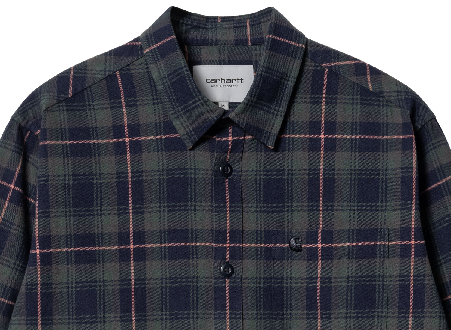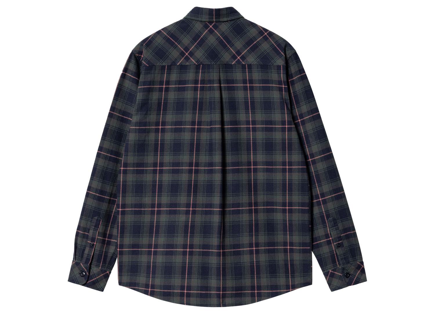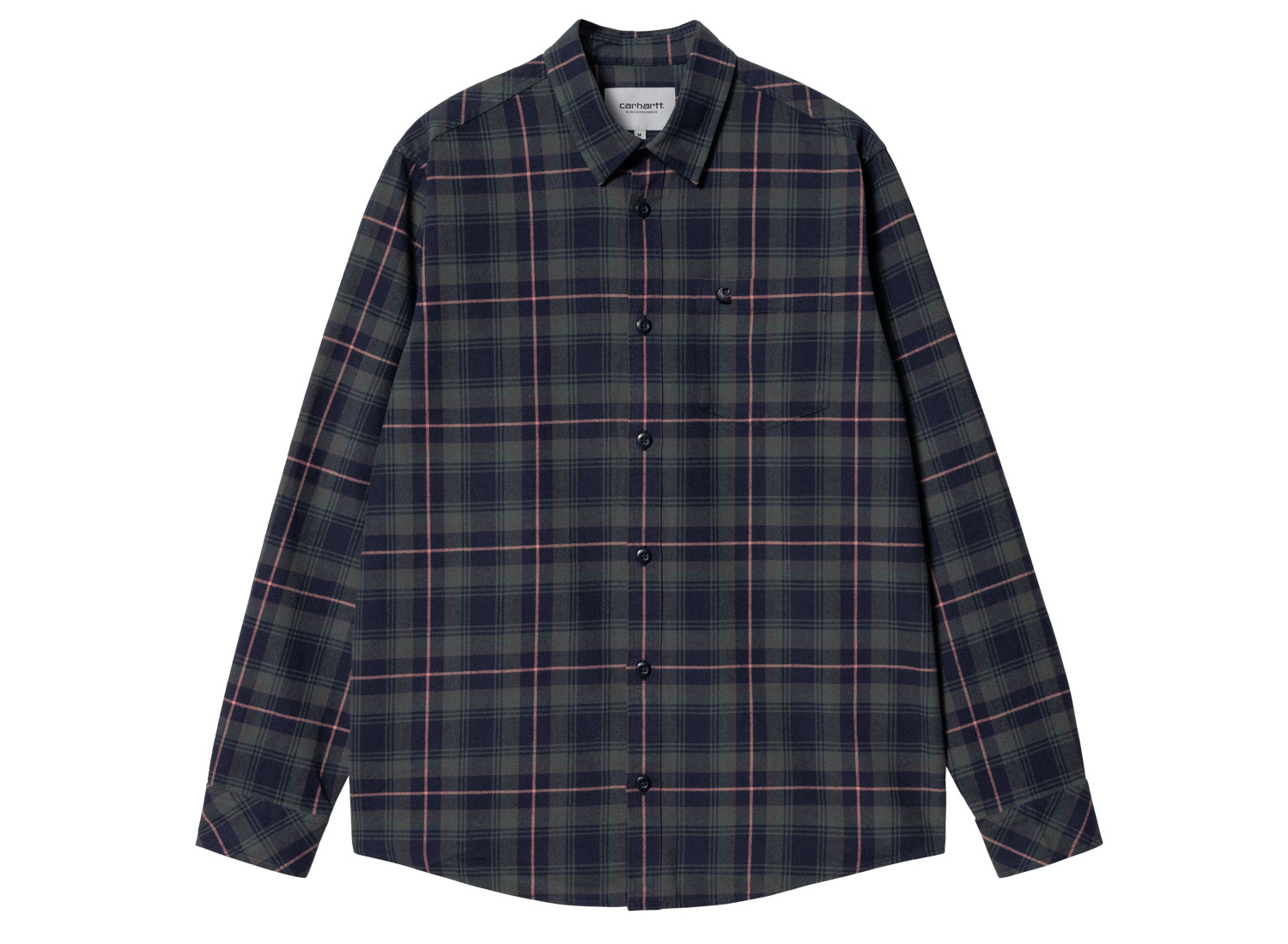 CARHARTT WIP Lermond Check Shirt Juniper / Dark Navy I030802. Regular fit checked shirt made from cotton flannel. Woven-dyed. Piece washed out. Carhartt WIP C logo on chest pocket. Buttoned cuffs. Rounded hem.
