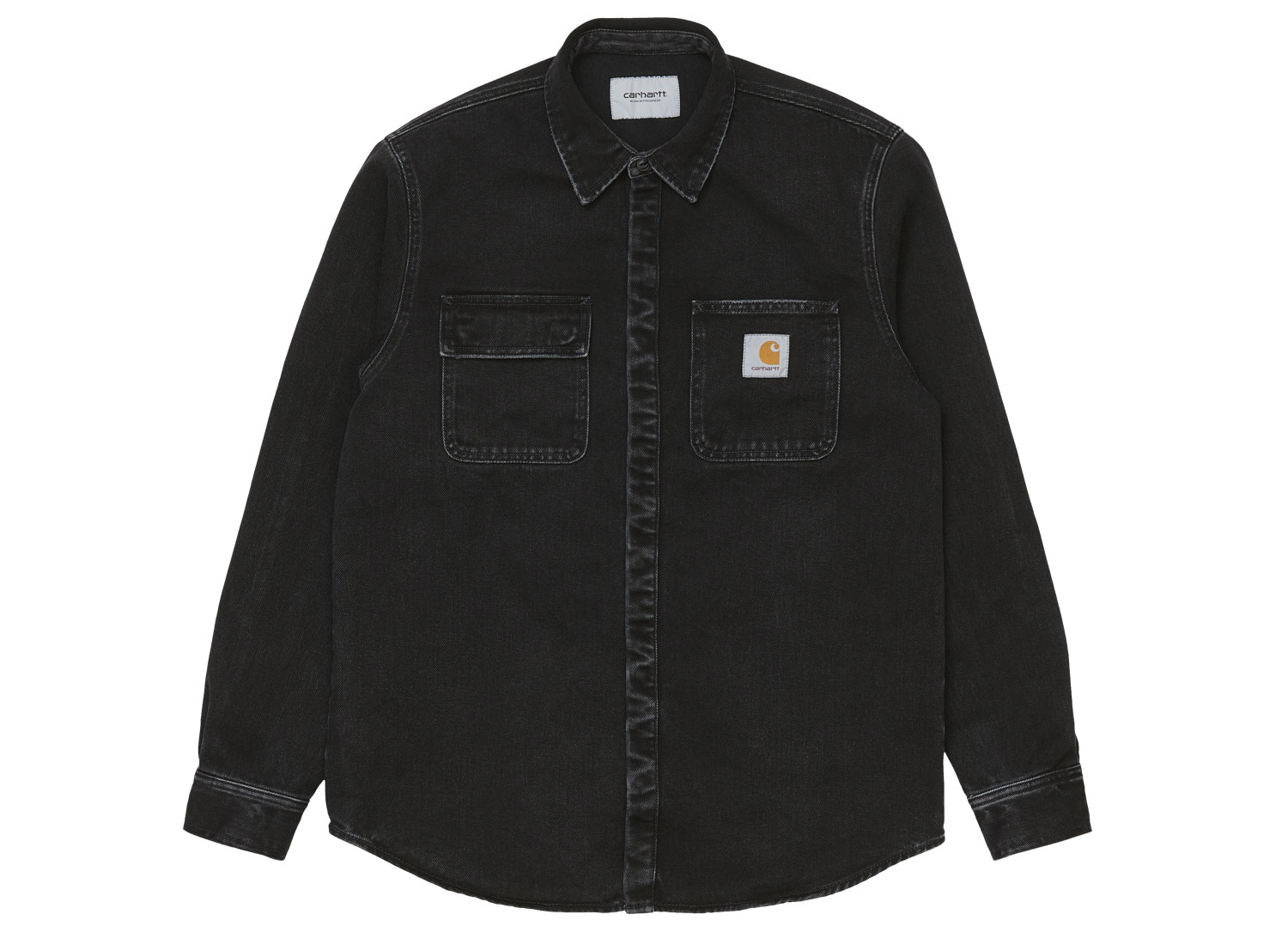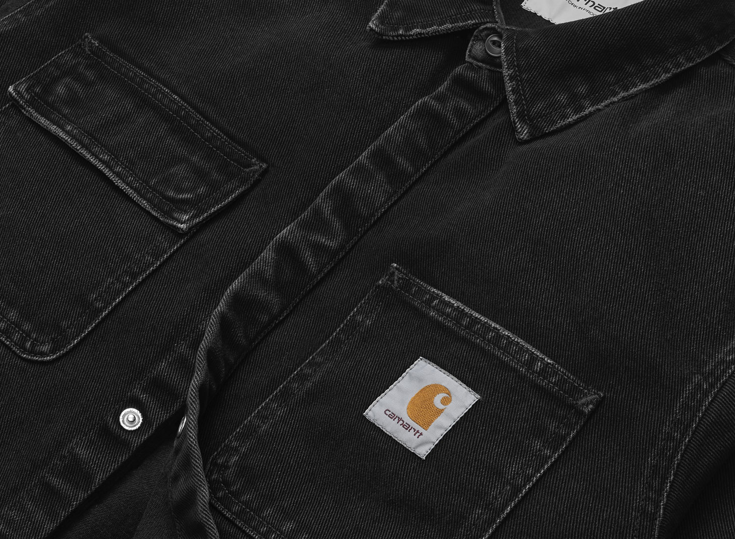 CARHARTT WIP Salinac Shirt Jac Black Stone Washed I029212. Regular fit overshirt made from heavy "Maitland" denim. 100% cotton. Two chest pockets. One pocket with flap closed by hidden grippers. Placket closed by hidden grippers. Square label.