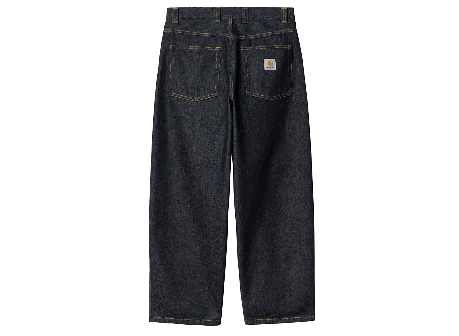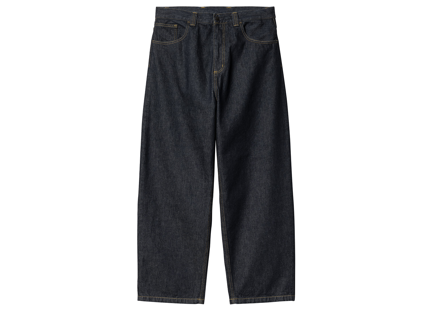 CARHARTT WIP Brandon Pant Blue Rinsed I035893_01_02. Denim pants made from 100% heavyweight cotton (13.5 oz). Loose, straight fit with a dropped crotch. Five pockets. Back yoke. Square label. This item runs large: we recommend choosing one size smaller than your usual size.