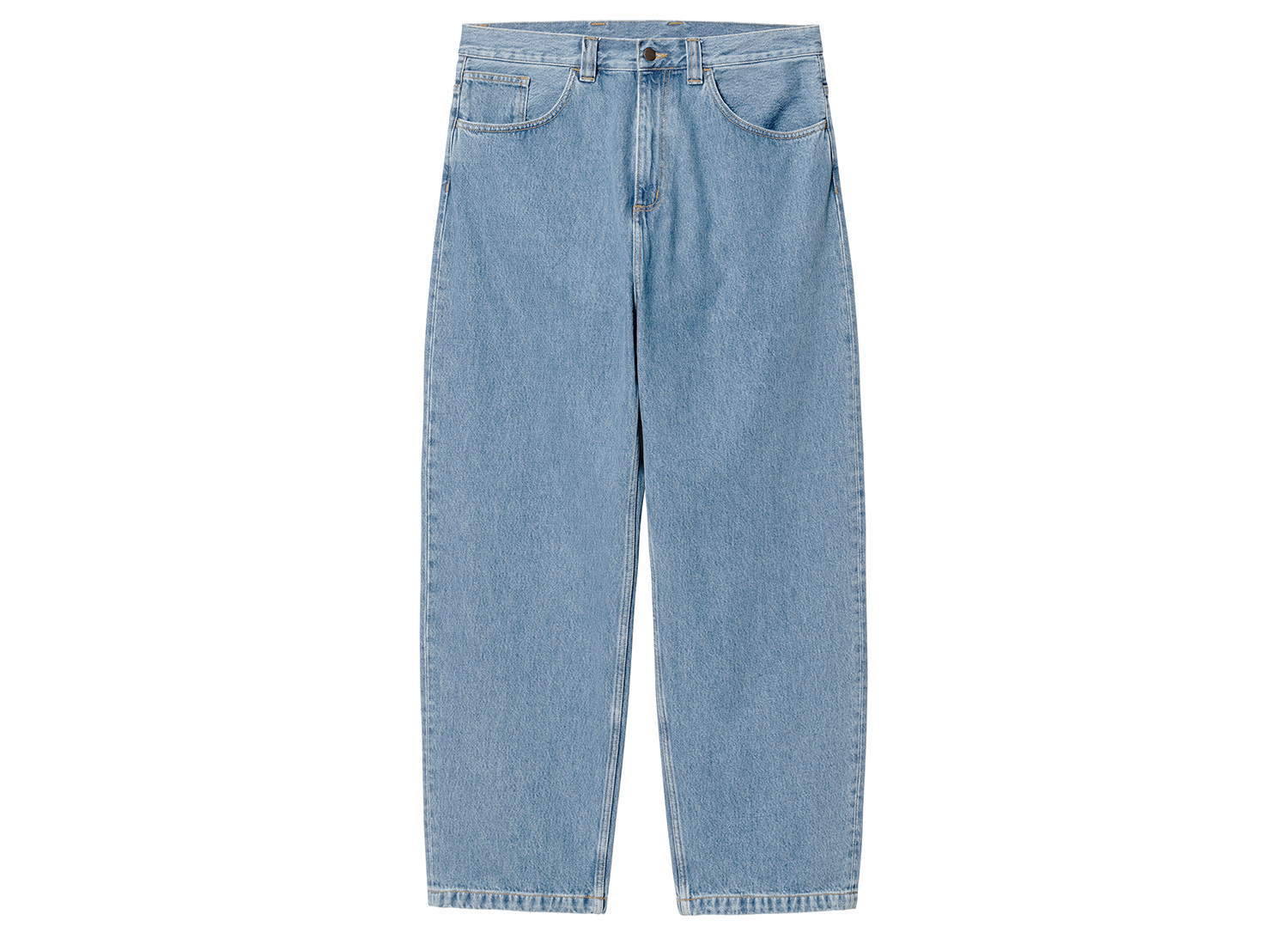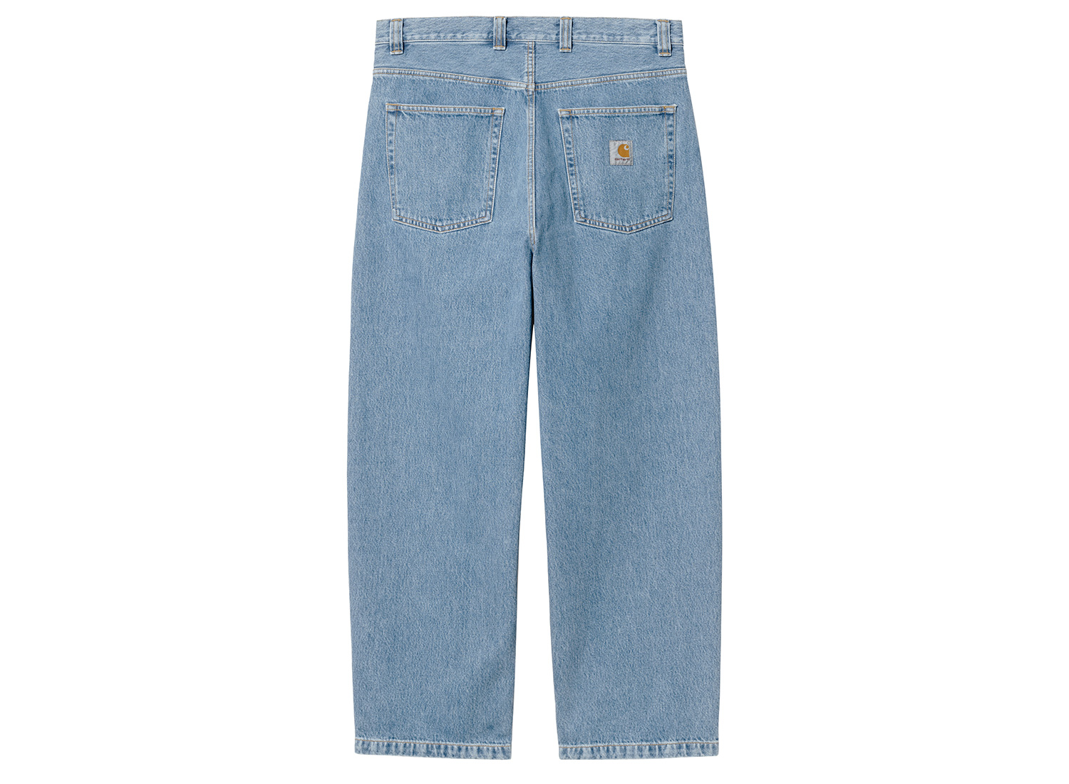 CARHARTT WIP Brandon Pant Blue Stone Bleached I035893_01_12. Denim pants made from 100% heavyweight cotton (13.5 oz). Loose, straight fit with a dropped crotch. Five pockets. Back yoke. Square label. This item runs large: we recommend choosing one size smaller than your usual size.