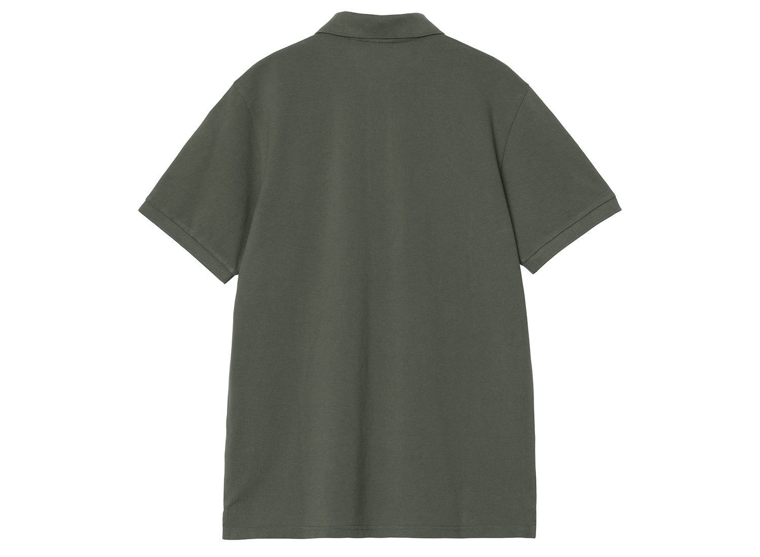 CARHARTT WIP Chase Pique Polo Leaf / Gold I023807. Short-sleeved polo shirt in washed piqué cotton. Relaxed fit. Two-button placket. Chest embroidery. Ribbed collar and cuffs. Discreet side vents at the seams.