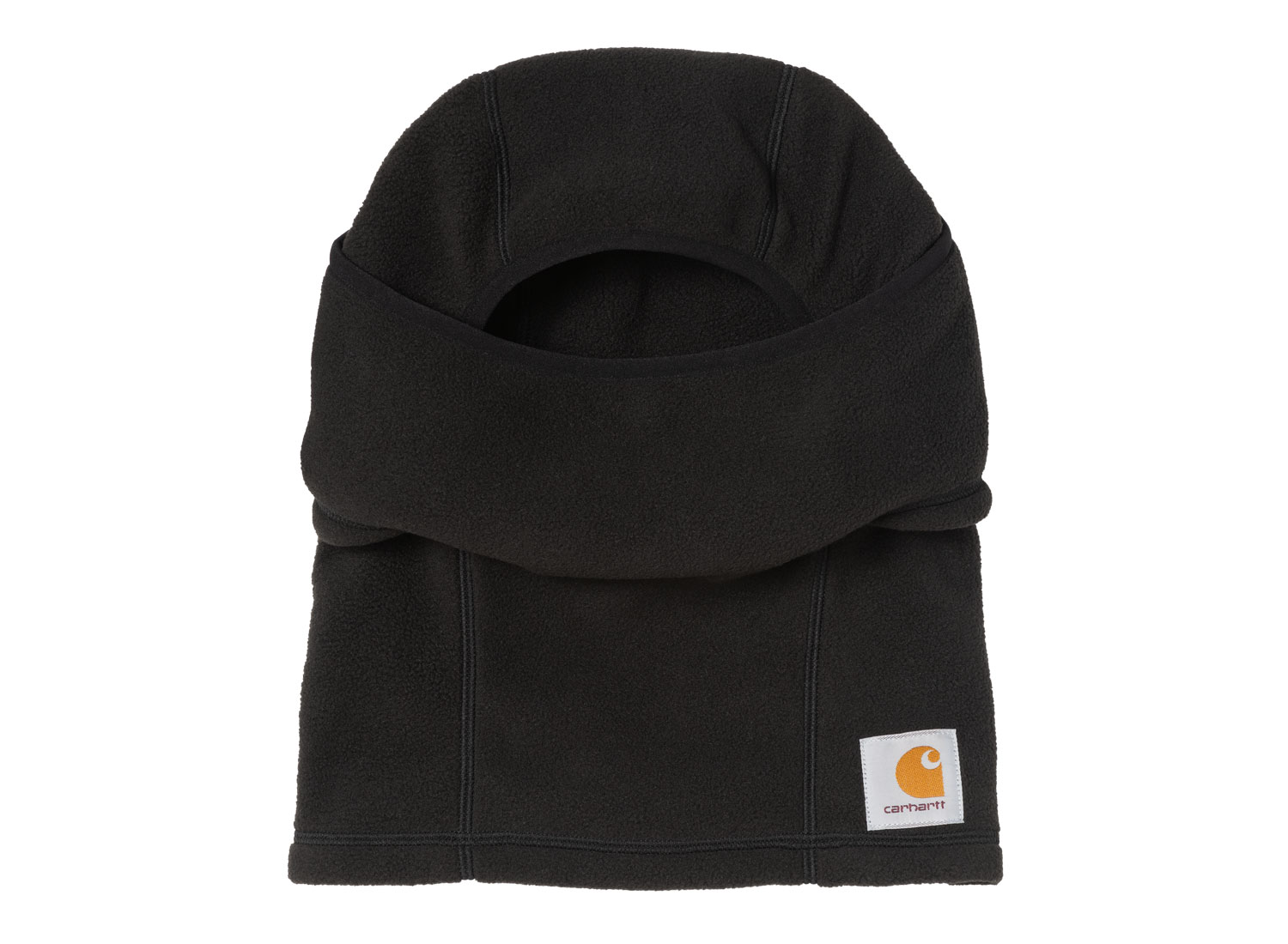 CARHARTT WIP Expedition Mask Black / Black I035467_00E_XX_06. Soft, medium-weight polyester fleece balaclava. 100% polyester. Square label sewn on the side. Height: 39.5 cm.