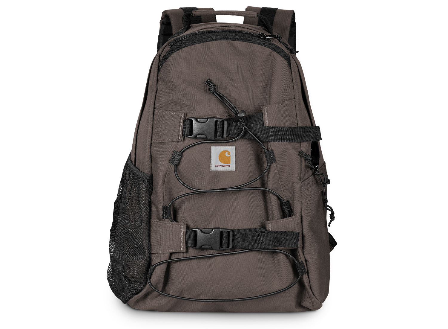 CARHARTT WIP Kickflip Backpack Shale I031468. Backpack made from 97% recycled polyester and 3% polyurethane ripstop canvas. 11oz. Repellent fabric. Two-way zip closure. Side pocket with zip closure. Mesh side pocket. Board fixation with plastic clickers. Measures : 45 x 29 x 19 cm. 24,8L.