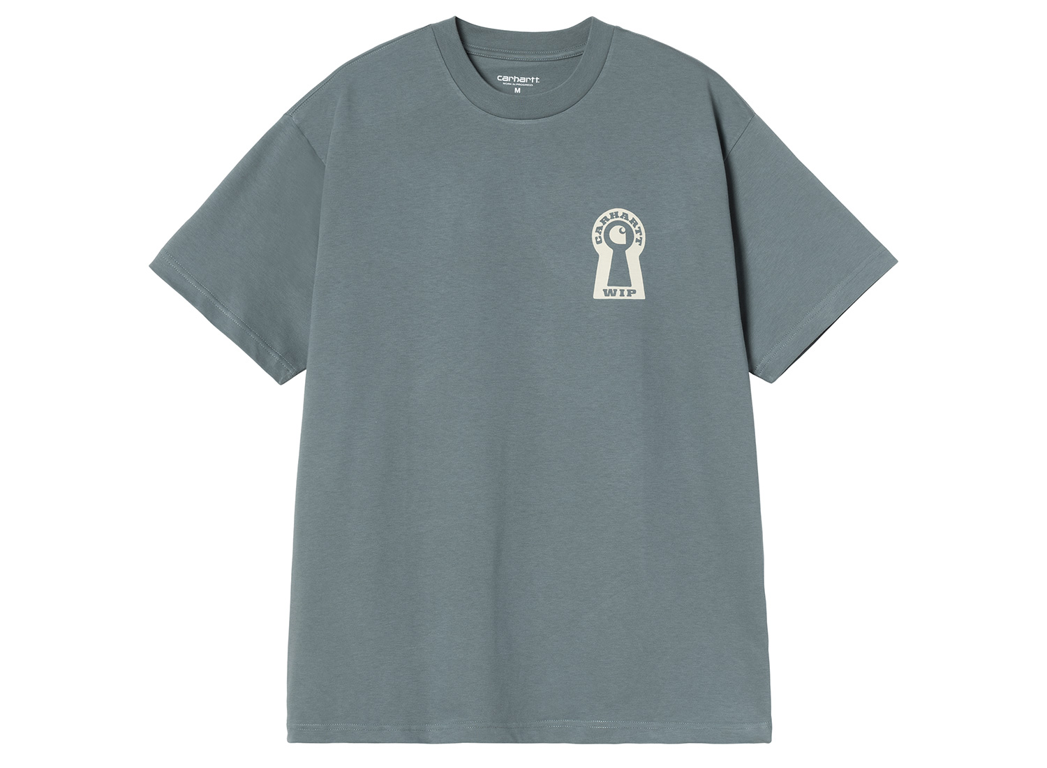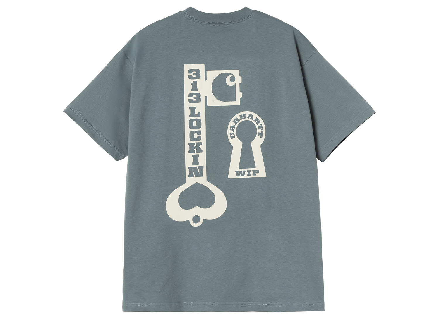 CARHARTT WIP Locked Tshirt Cozy Blue I036230_3IT_XX. T-shirt made from medium-weight cotton jersey. 100% organic cotton. Loose fit. Graphic prints on the front and back.