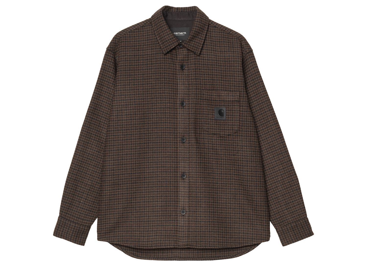CARHARTT WIP LS Lowis Shirt Lowis Houndstooth Vitola I035328_35M_XX_03. Shirt in heavyweight poly-wool herringbone fabric (80% polyester, 20% wool). Loose fit. Yarn-dyed before weaving. Chest pocket. Faux leather Square Label.
