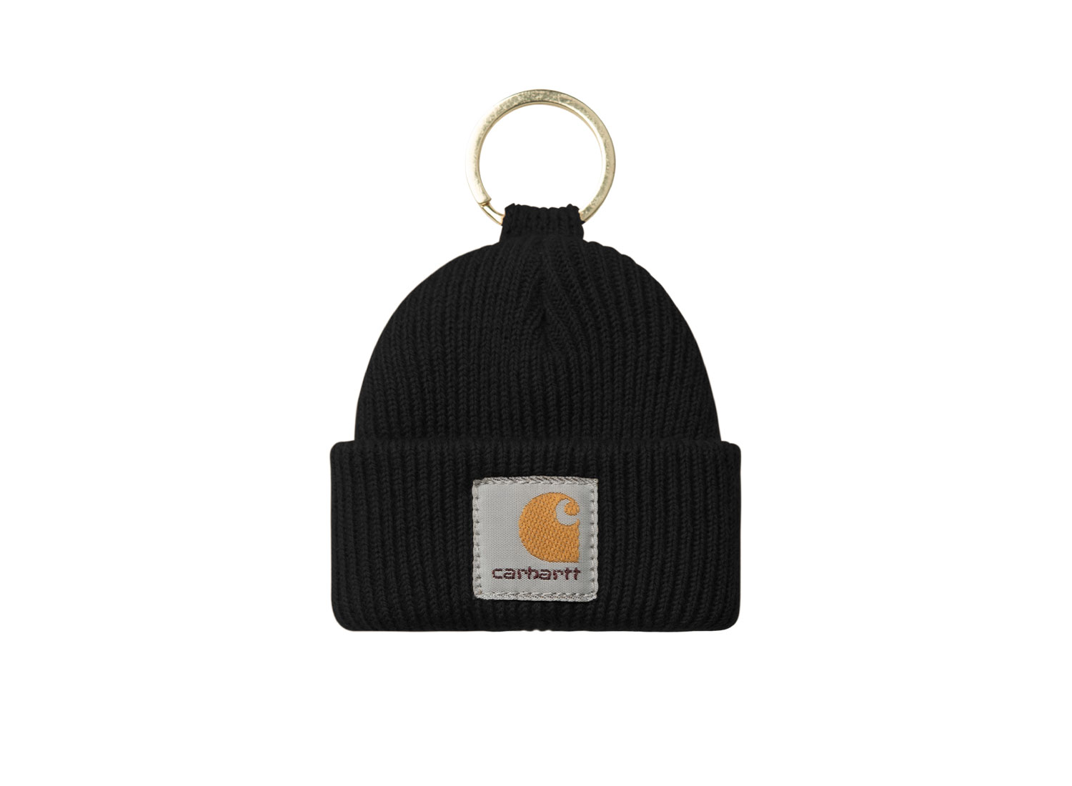 CARHARTT WIP Mini Watch Hat Keychain Acrylic Black I036420. Ribbed knit keychain in the shape of the iconic Watch Hat. 100% Acrylic. Metal ring. Square Label.