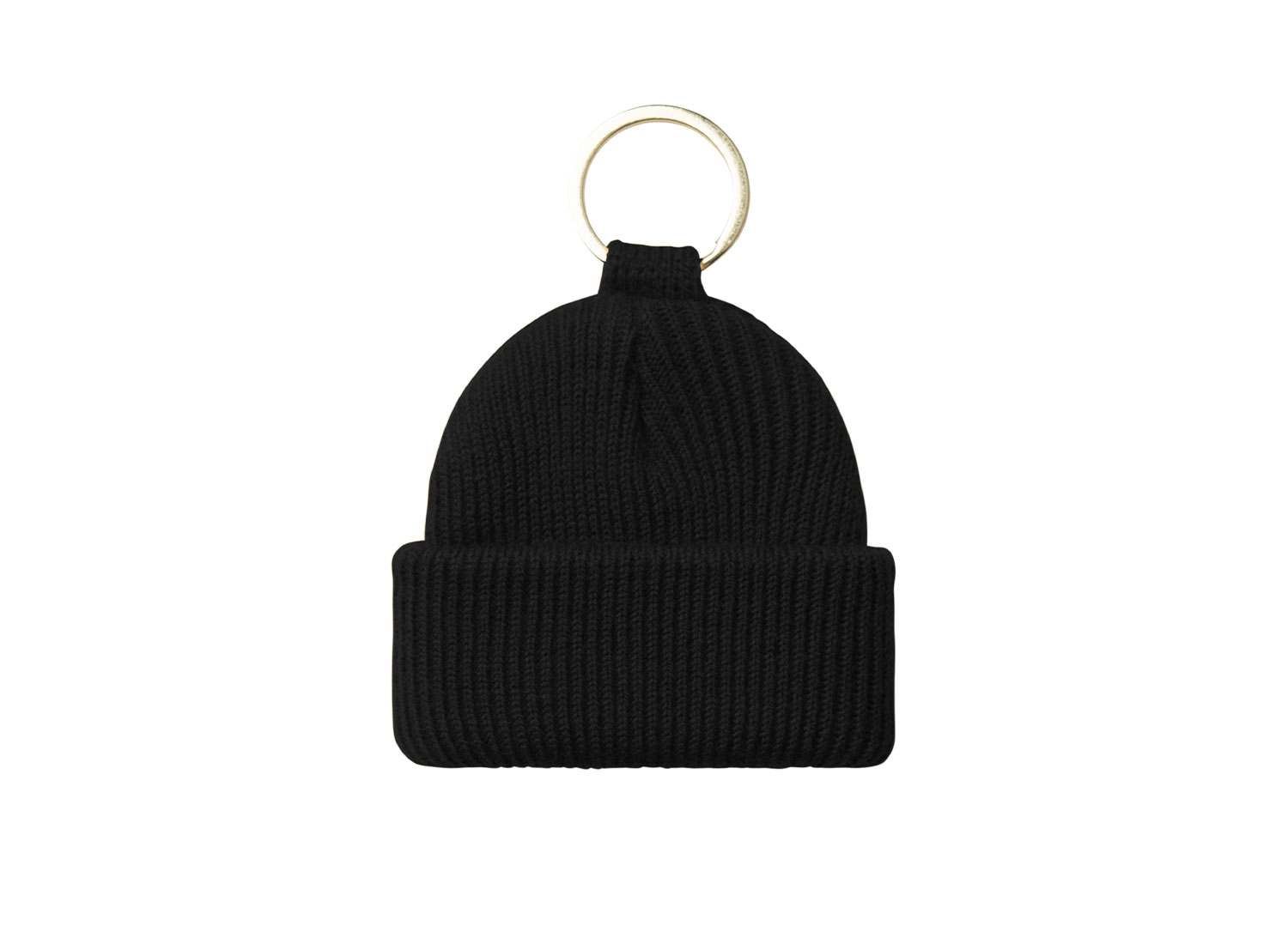 Mini Watch Hat Keychain Acrylic Black I036420. Ribbed knit keychain in the shape of the iconic Watch Hat. 100% Acrylic. Metal ring. Square Label.