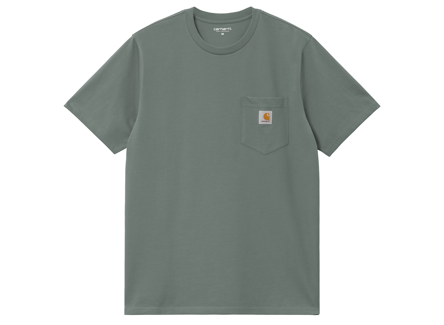 CARHARTT WIP Pocket Tshirt Velvet Green I030434. Regular fit S/S Tee made from cotton jersey fabric. Ribbed collar. Chest pocket with square label.