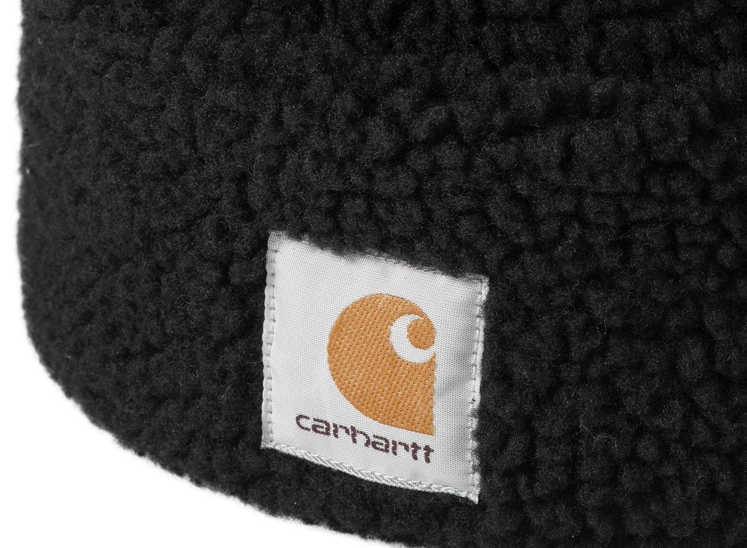 CARHARTT WIP Prentis Beanie Black I033848_89_XX_06. Beanie made of soft textured fleece. 100% polyester. Square Label is sewn on the front. Height: 21 cm.