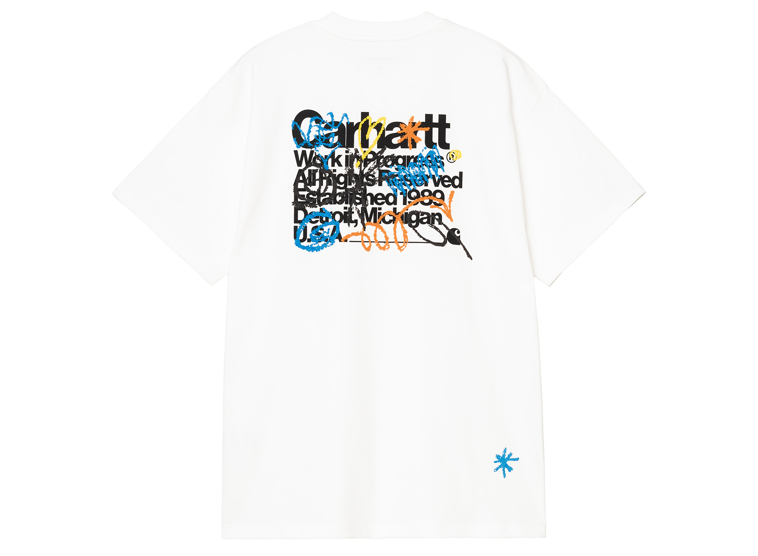 CARHARTT WIP Primary Tshirt White I036238. T-shirt made from medium-weight cotton jersey. 100% organic cotton. Loose fit. Graphic prints on the front and back.
