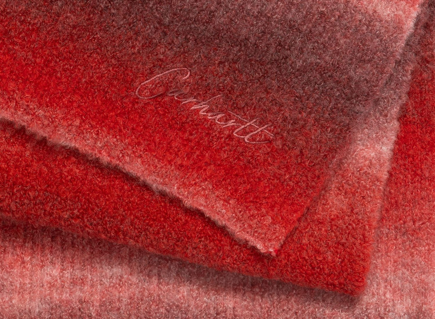 CARHARTT WIP Tony Scarf Tony Stripe Jacquard Palisander I035473_3DK_XX_06. Brushed knit scarf Blend of 69% acrylic, 17% nylon, 12% wool, 2% elastane All-over jacquard pattern. Embroidered logo. Dimensions: 175 × 30 cm.