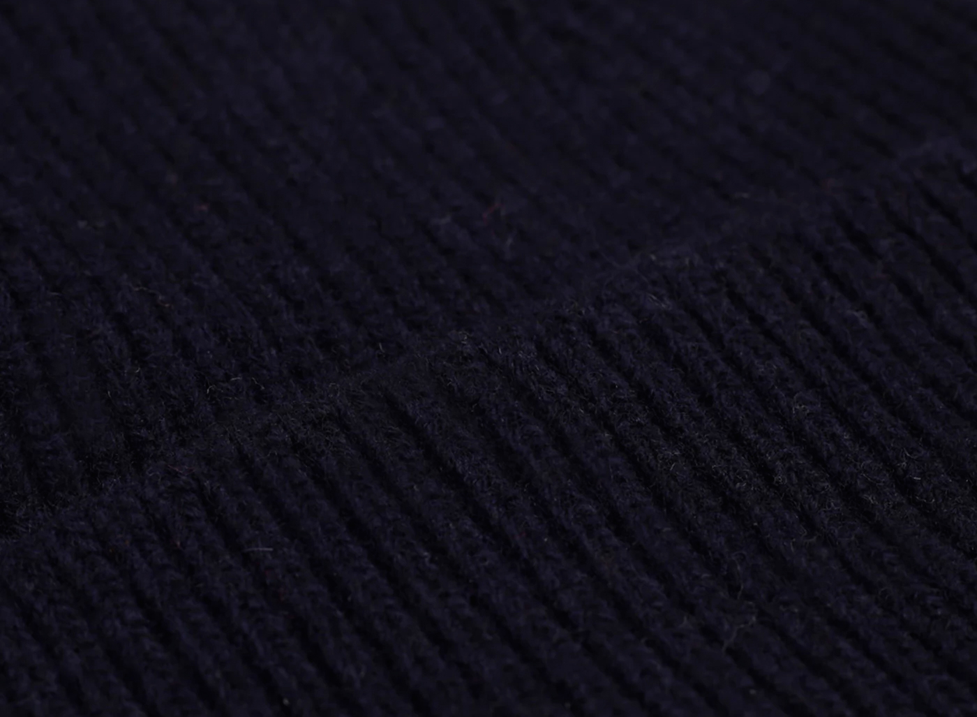COLORFUL STANDARD Merino Wool Beanie Navy Blue. Rolled up beanie made from merino wool knit.