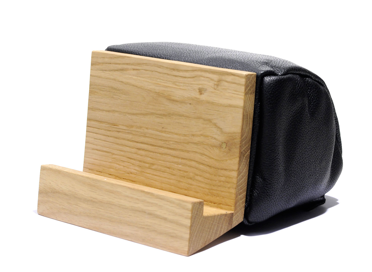 DUTCHDELUXES Book / Tablet Stand Black. Best book & tablet stand made from full grain leather and oak wood. Hande made in Netherland.
