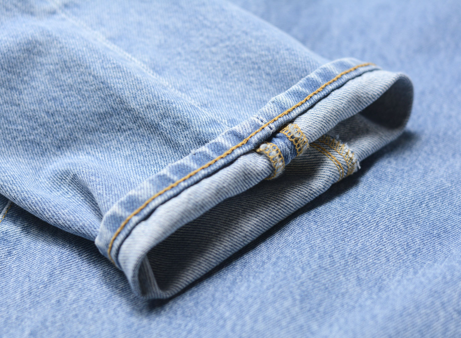 14.6 oz denim, 100% cotton, sturdy and textured.