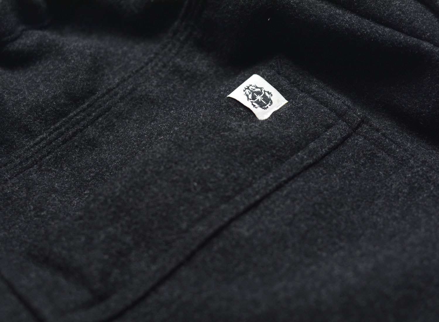 “Synergy” label stitched on rear pocket.