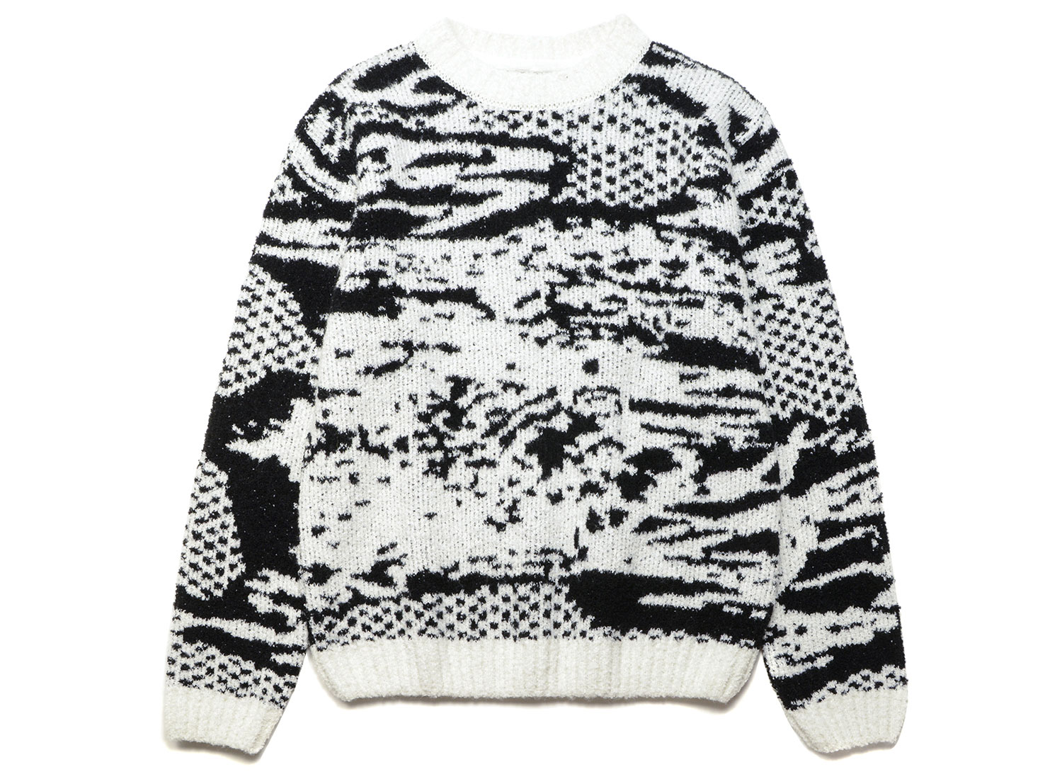 Crewneck sweater knitted from a technical blend including wool, recycled polyamide and acrylic.