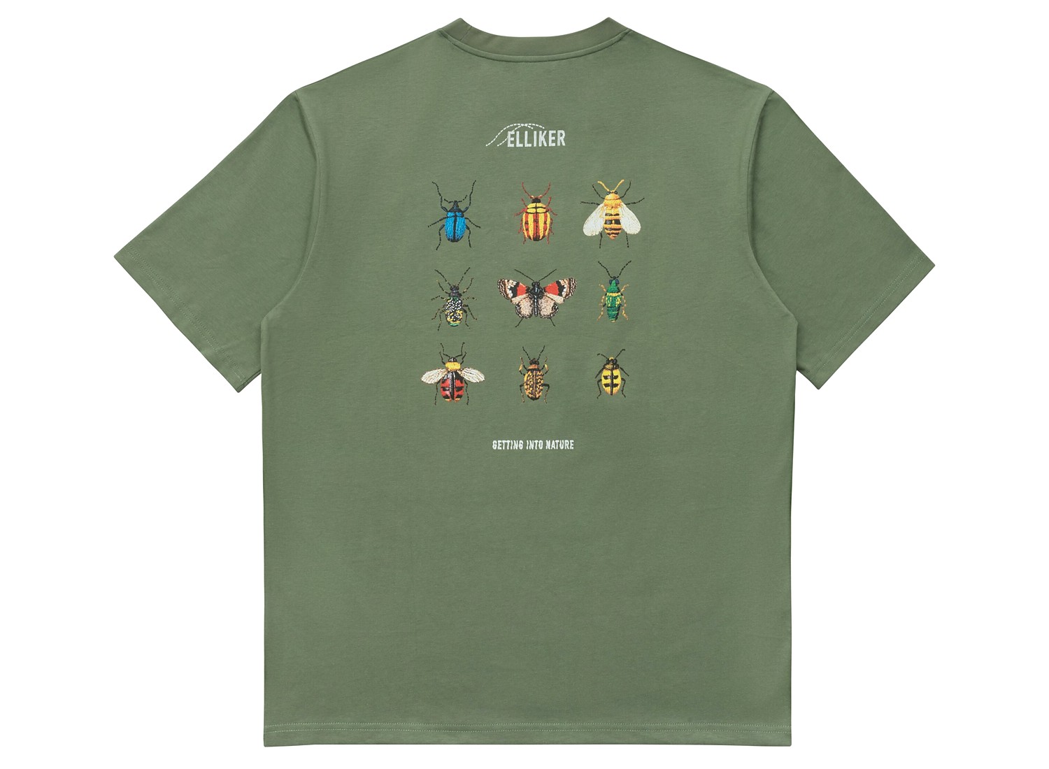 Screen-printed front and back graphics inspired by the world of insects and nature.