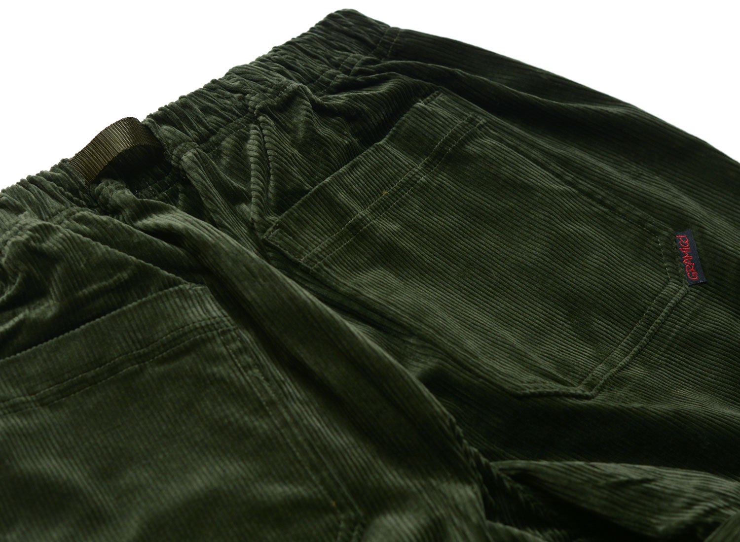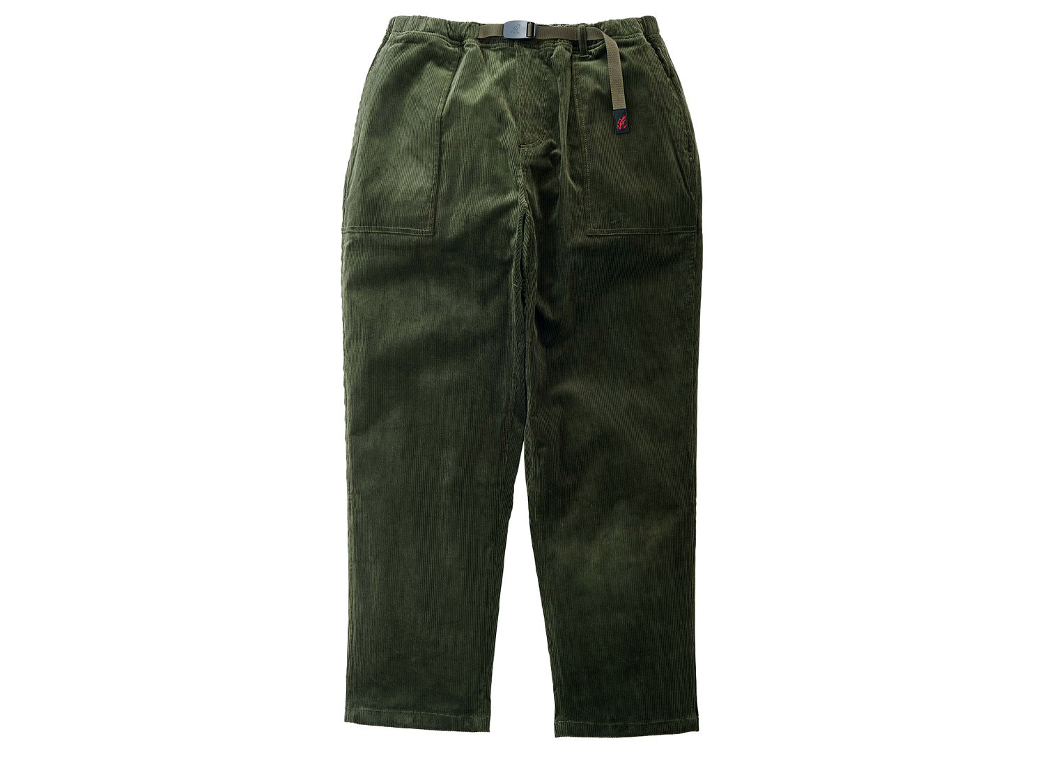 GRAMICCI Corduroy Loose Tapered Ridge Pant Dark Green. Loose fit pants slightly tightened at the bottom made from stretch corduroy, 98% cotton, 2% polyurethane. Large front and back pockets. Adjustable elastic waistband.