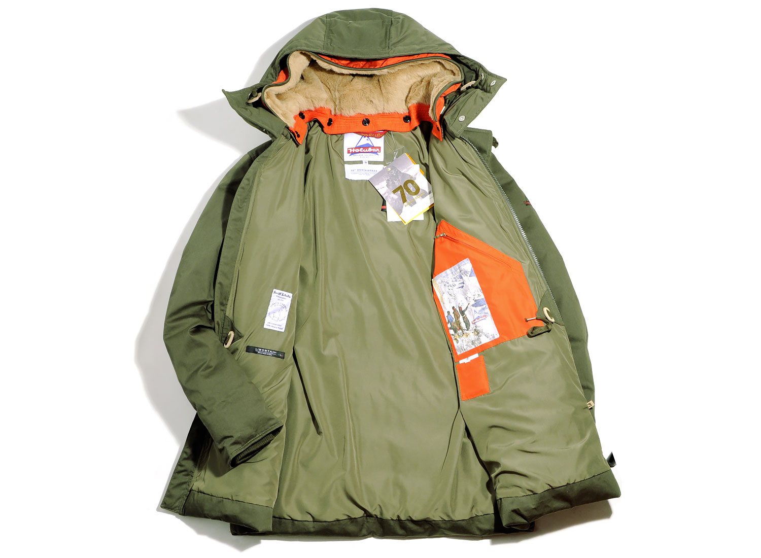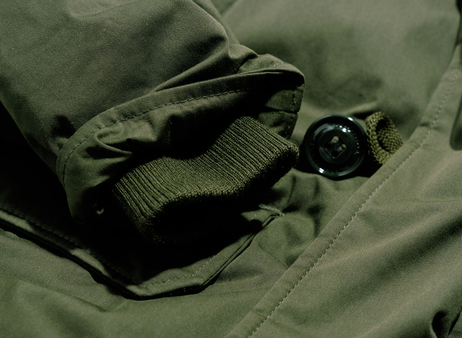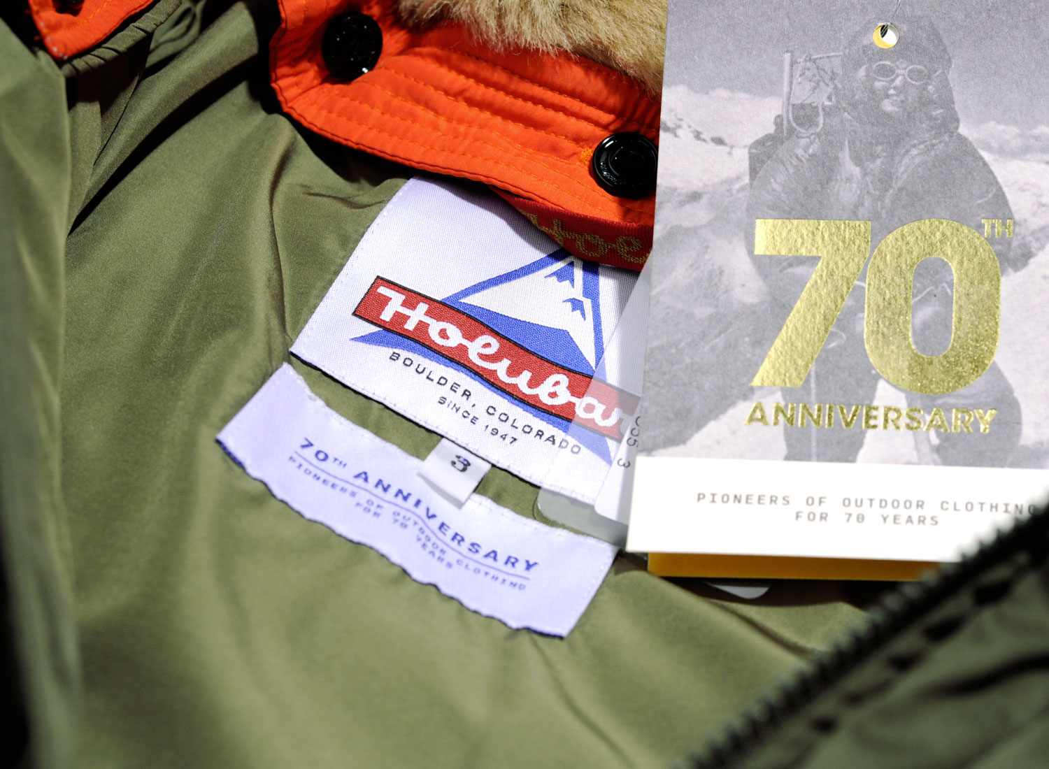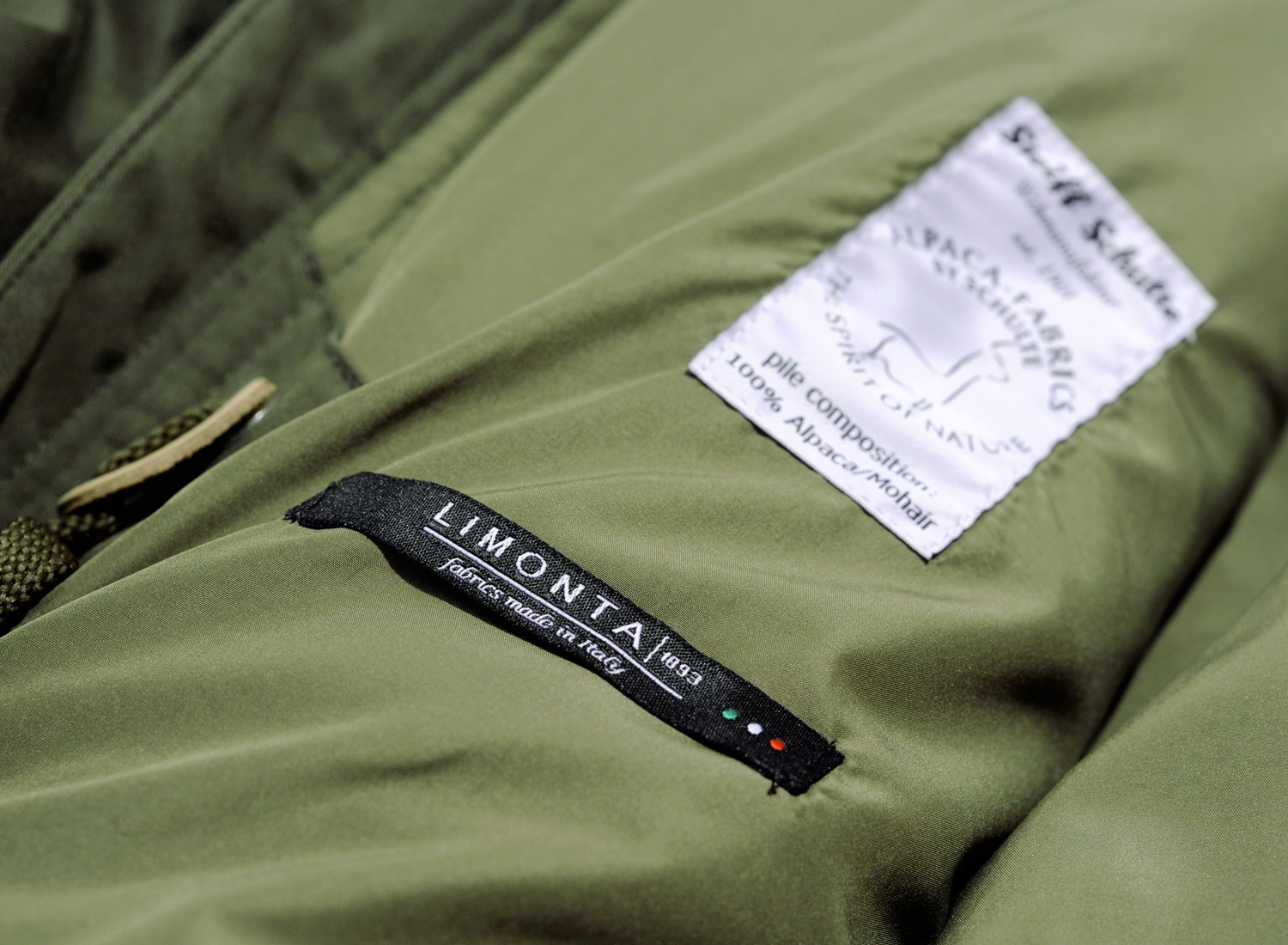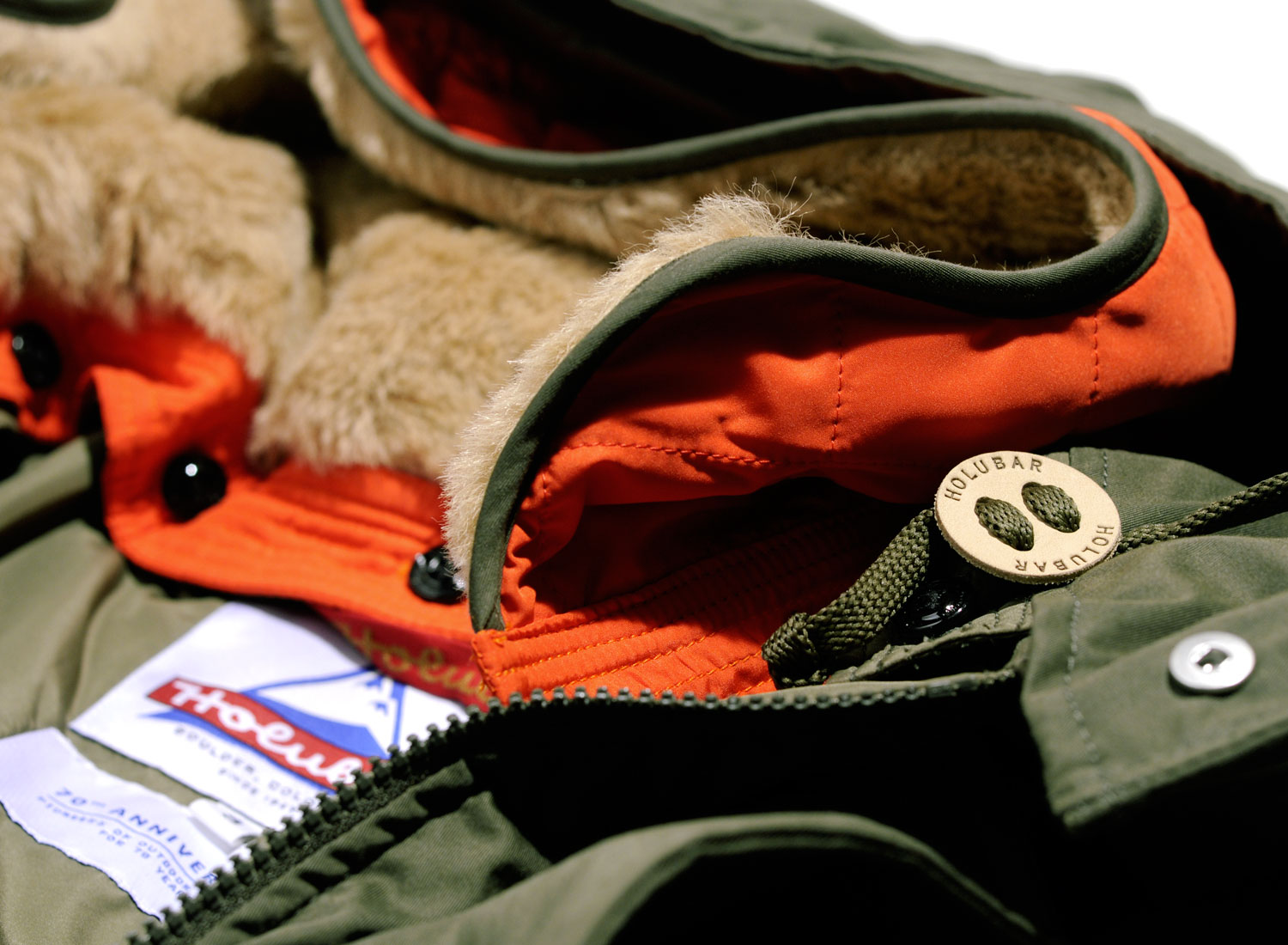 HOLUBAR Boulder LI77 Parka Military Olive. Straight fit "Arctic Parka" made from "LIMONTA" repellent italian fabric. 82% cotton / 18% Poolyamide. 100% nylon quilted lining. Down and feather filling. Zip closure with buttoned flap. Alpaca / Mohair reovable collar lining. Removable hood. Drawcords on waist and hood with leather stoppers. Ribbed cuffs. Two pockets on chest, two on bottom and one inside.