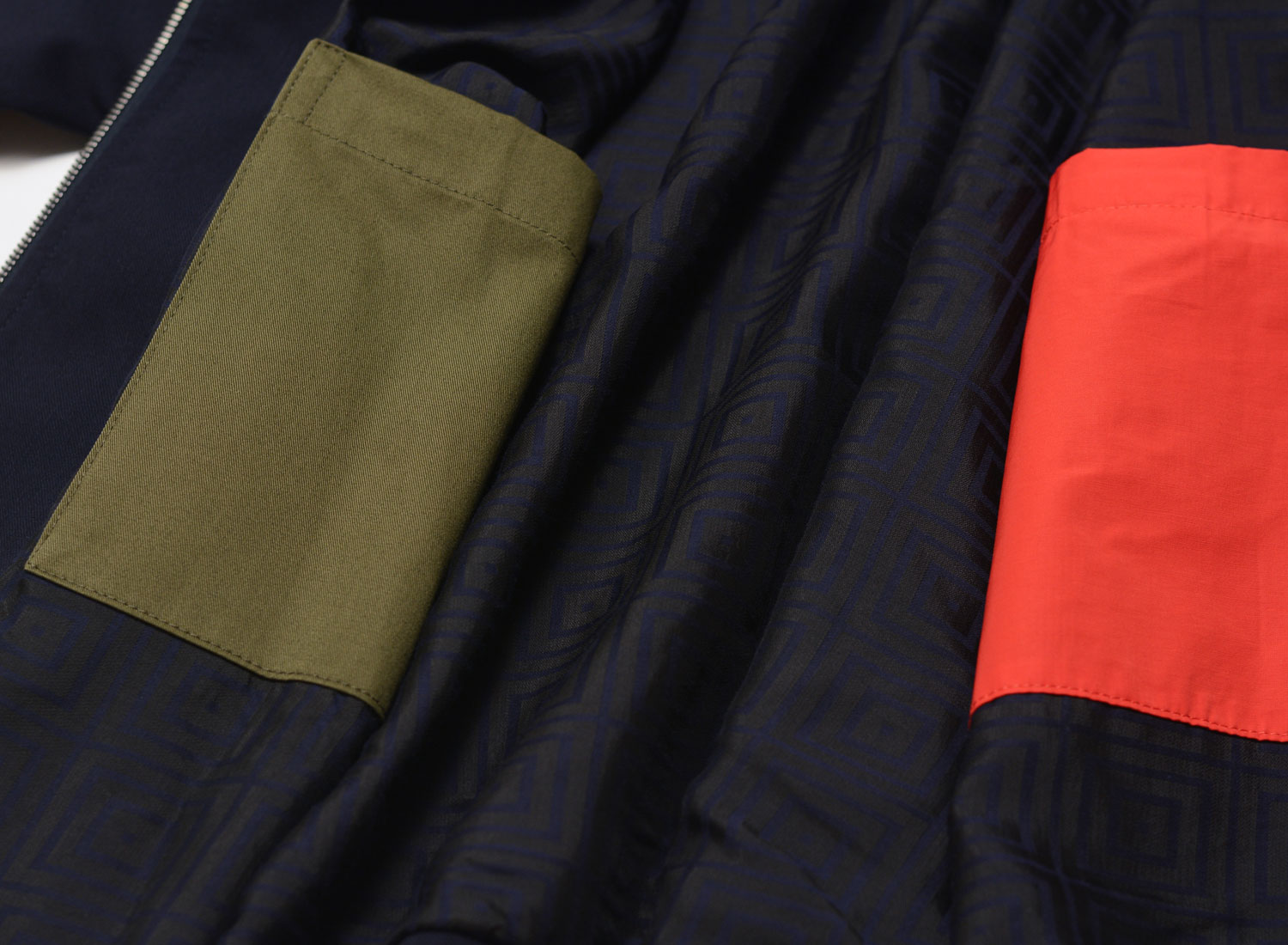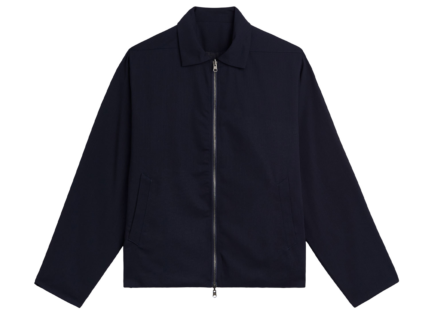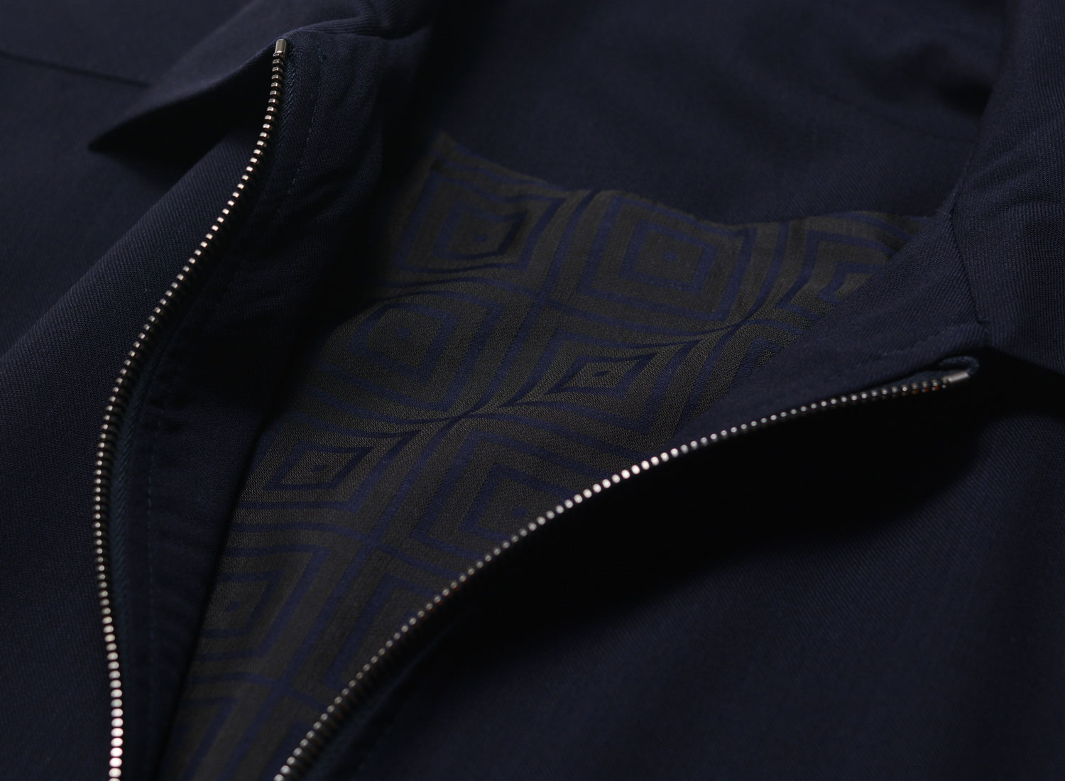 Lightweight jacket inspired by tailored jackets, made from 100% virgin wool. Crafted from a soft, flowing fabric. Fully lined with a recycled fabric featuring a graphic print. Double-slider zip closure. Two interior pockets.