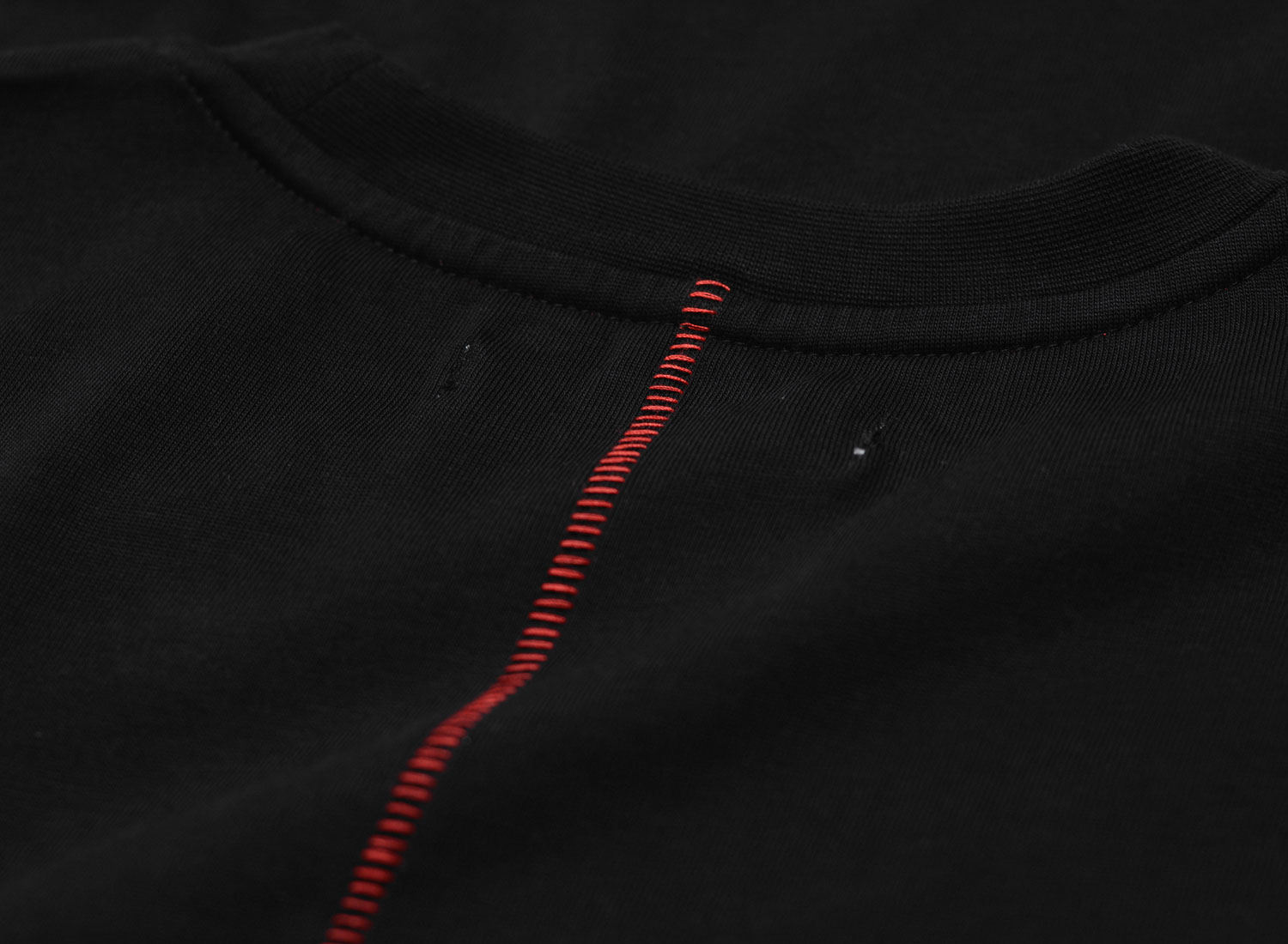 Relaxed fit L/S Tee made from heavy cotton jersey fabric. 100% organic cotton. Ribbed collar. Red stitching and tonal small print on the back.
