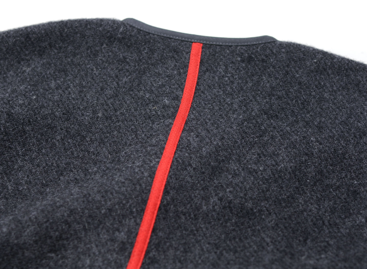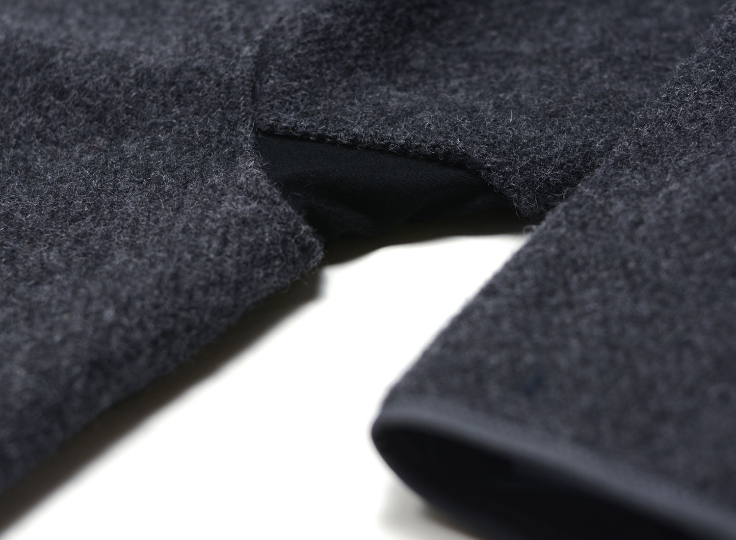 One side in clean anthracite wool with a generous cut and two piped pockets.