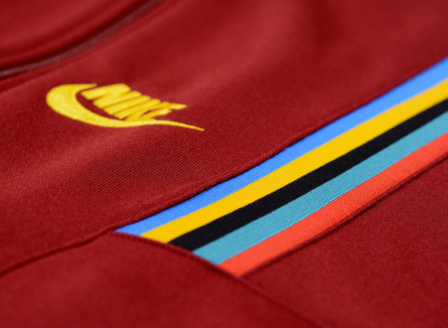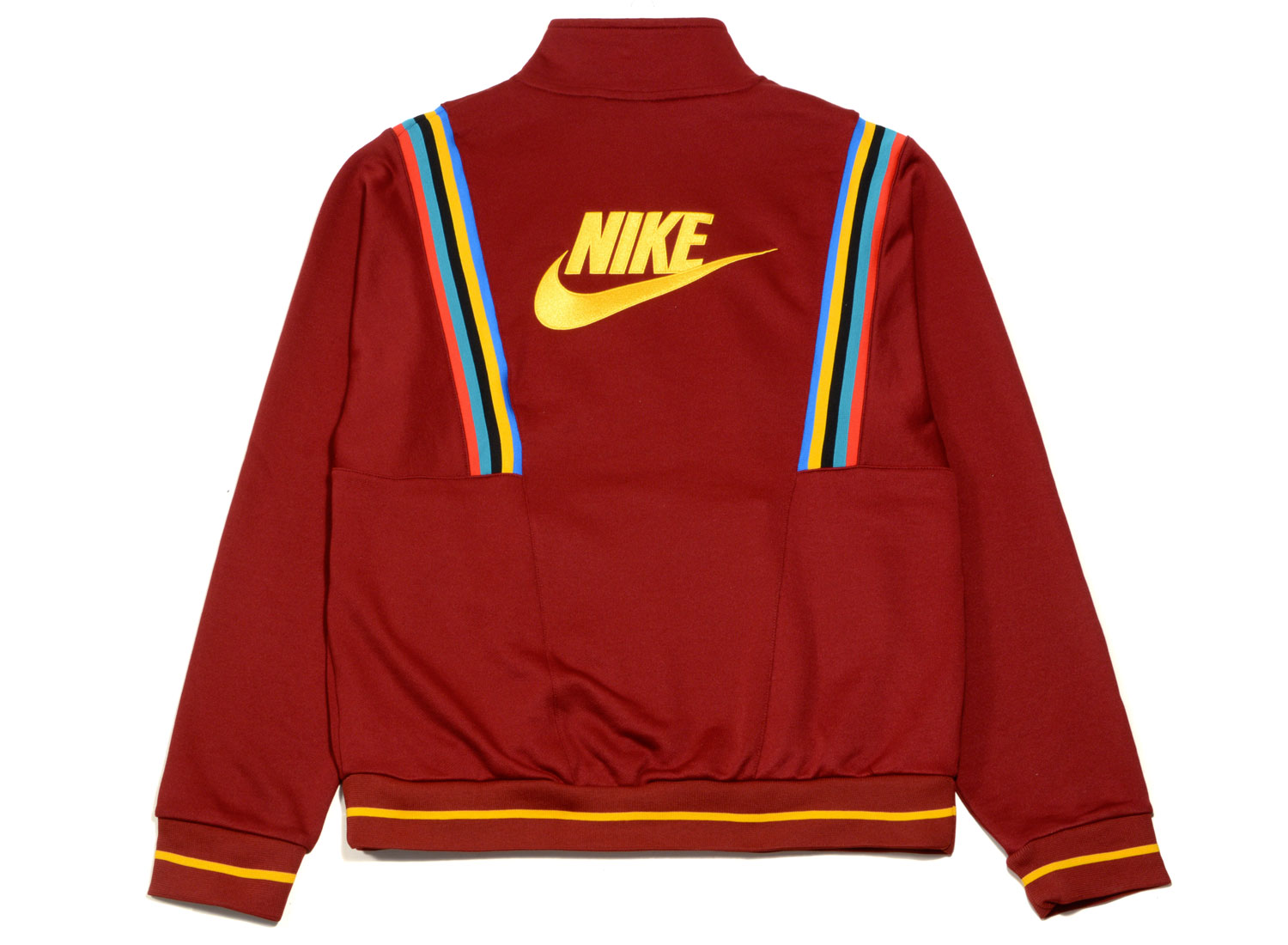 NIKE Sportswear Re-Issue Jacket Team Red AR1867-677. Retro Track Jacket inspired by an OG style frome 1988. Retro fit. 52% cotton / 48% nylon fleece fabric. Ribbed cuffs and hem. Multi-tons tapes. Logo on chest and back. Pockets on bottom.