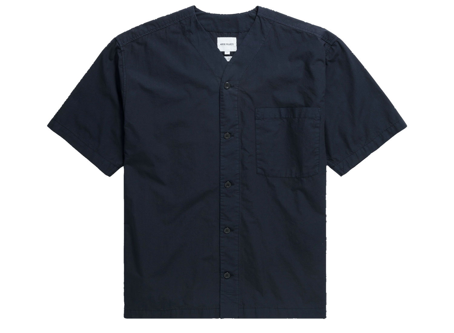 NORSE PROJECTS Erwin Typewriter SS Shirt Dark Navy. Baseball inspired S/S shirt made from cotton poplin fabric. Chest pocket. Straight hem. Shoulder yokes on the back.