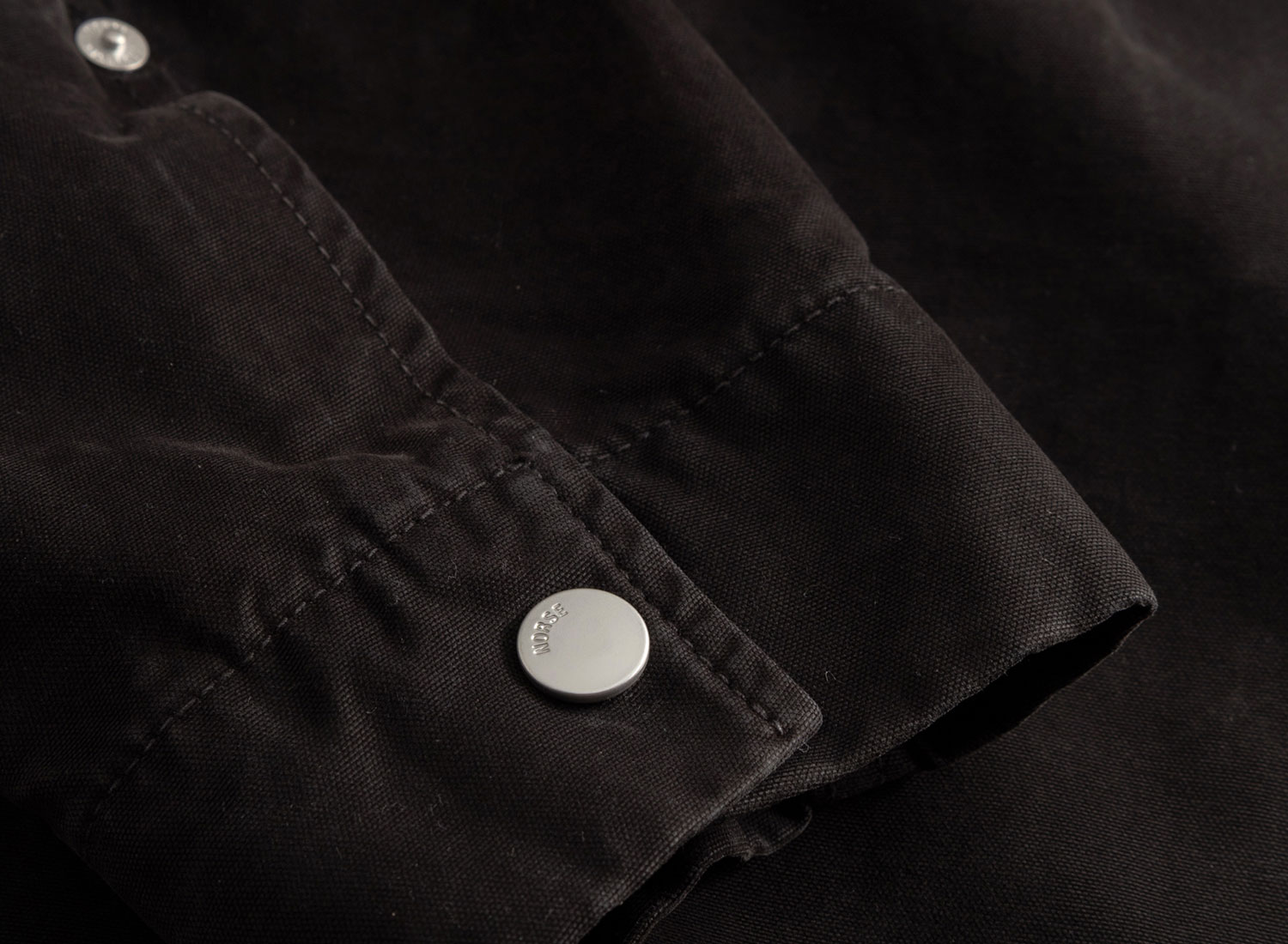Rivet-reinforced snap cuffs.