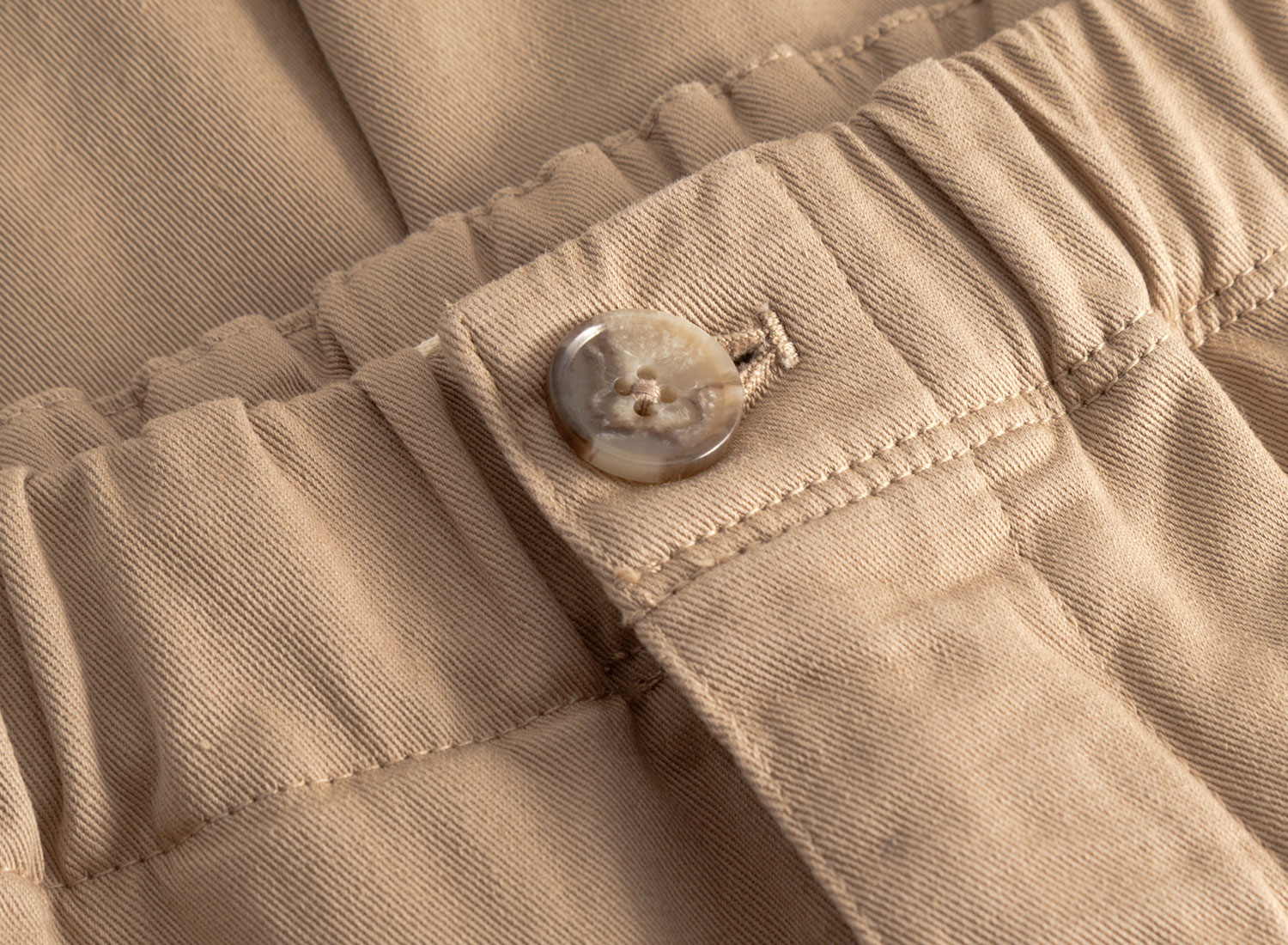 Zip fly, snap closure, drawcord waist.