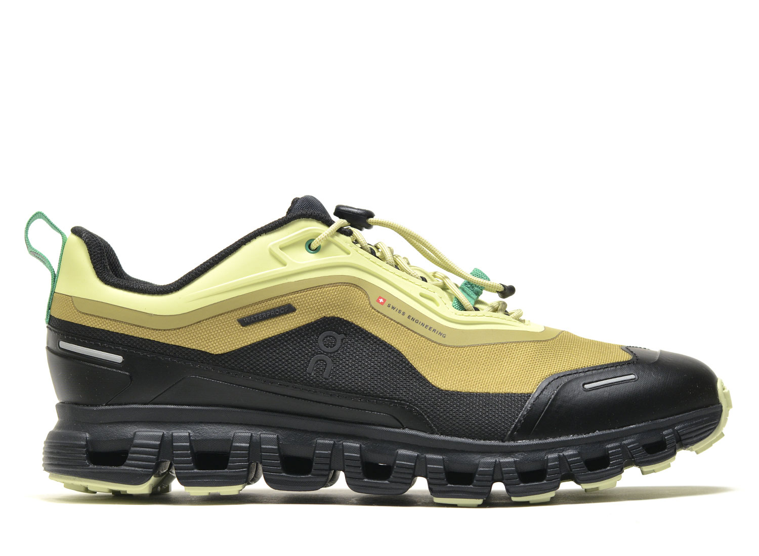 ON RUNNING Cloud 6 Geo WP Limelight / Safari. Based on the Cloud 6, the perfect shoe for all urban and off-road adventures, this new waterproof version ensures comfort, ultimate grip, and outdoor style. CloudTec® and Zero-Gravity foam for a cushioned feel. Ultra-grippy Missiongrip™ outsole. Mudguard and toe cap for added protection.