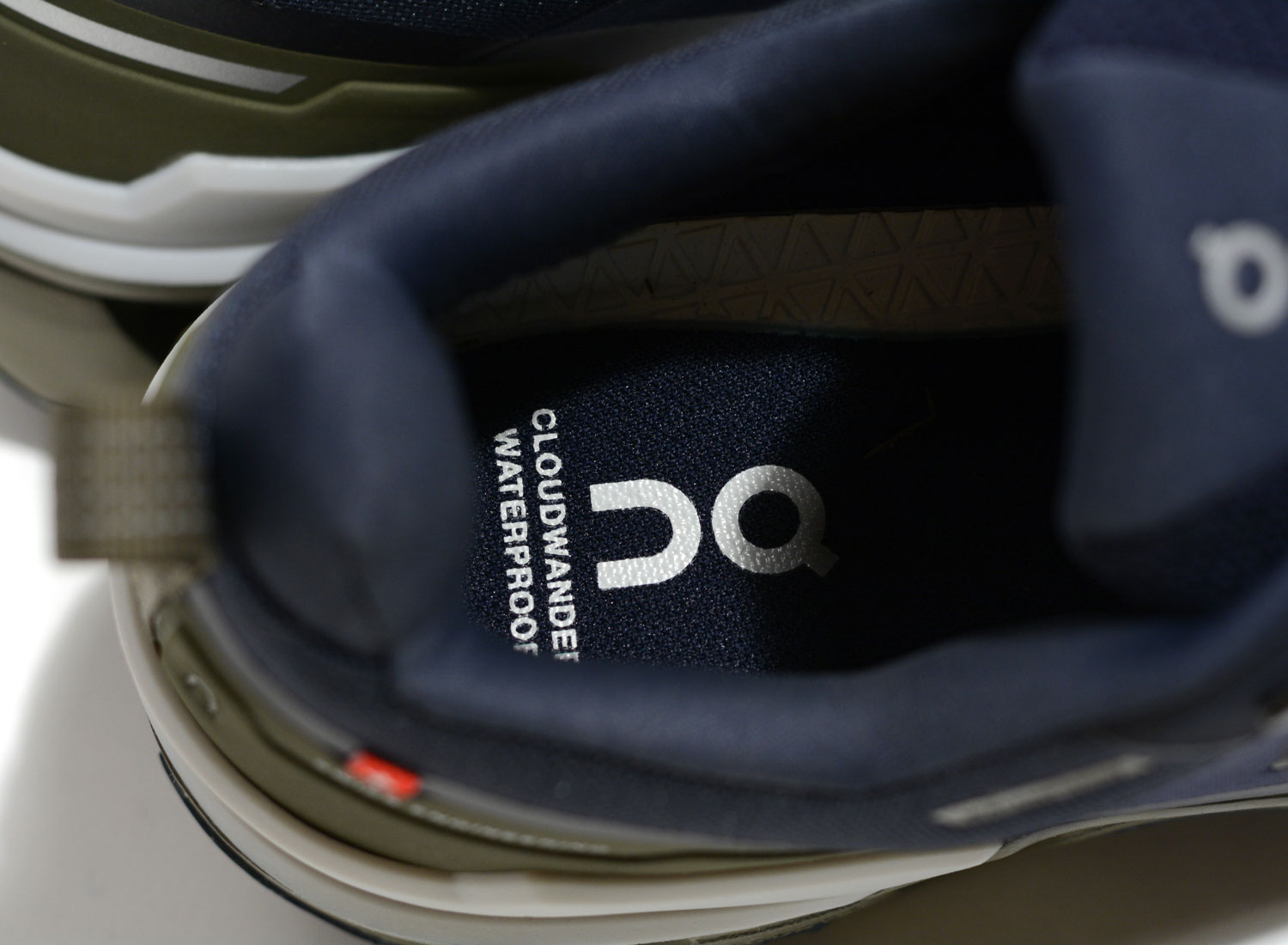 ON RUNNING Cloudwander Waterproof Midnight / Olive. We are proud to announce the Swiss brand On Running in our selection. The Cloudwander Waterproof is the perfect shoe for all outdoor, urban or off-road adventures, whatever the weather. Lightweight (390g), waterproof, it offers ultimate support. Missiongrip™ rubber sole for optimal grip. CloudTec® cushioning. Total recycled content of at least 25%.