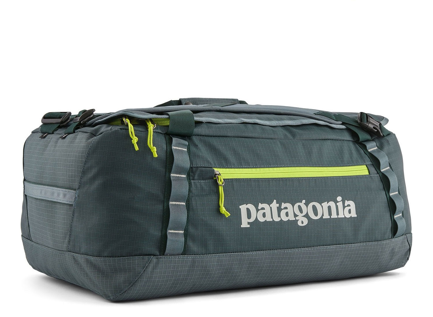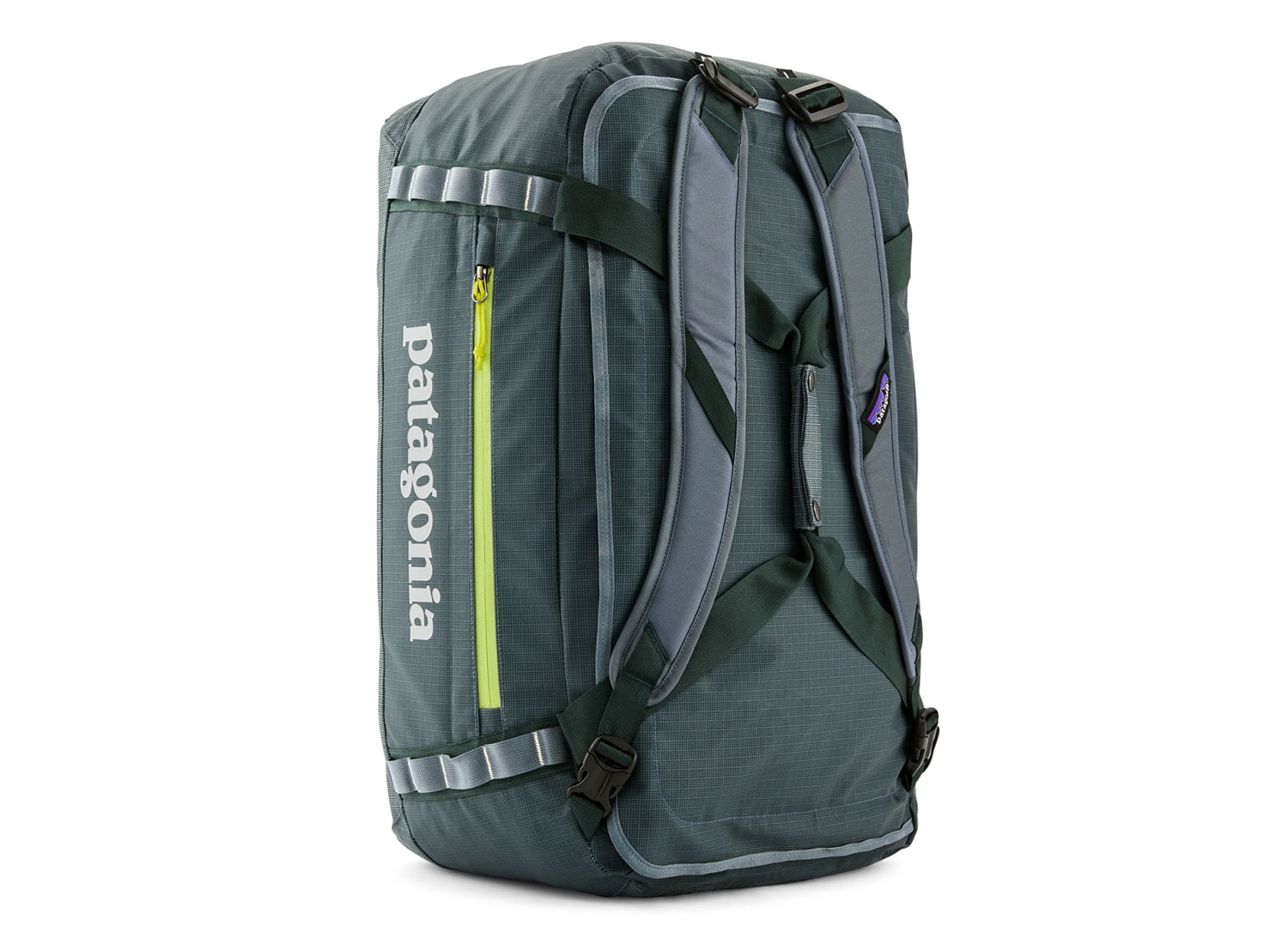15-oz 900-denier 100% polyester ripstop (50% solution-dyed) with a TPU-film laminate and a DWR (durable water repellent) finish. Large opening to main compartment, zippered side pocket, mesh pockets in lid; stuffs into its own pocket for easy storage. Padded, removable shoulder straps for a backpack carrying option and reinforced haul handles for easy carrying. Padded base protects contents. Burly, reinforced daisy chains for lashing. Internal compression. 26.7" x 15.7" x 11.8" / 55L.