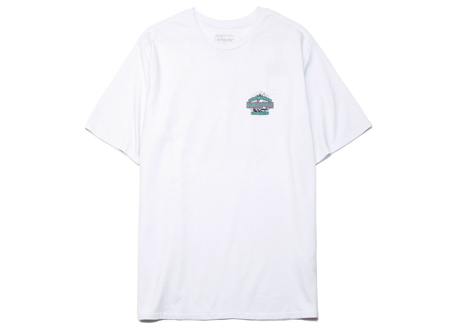Classic crewneck tee with screen-printed graphics on chest and back.