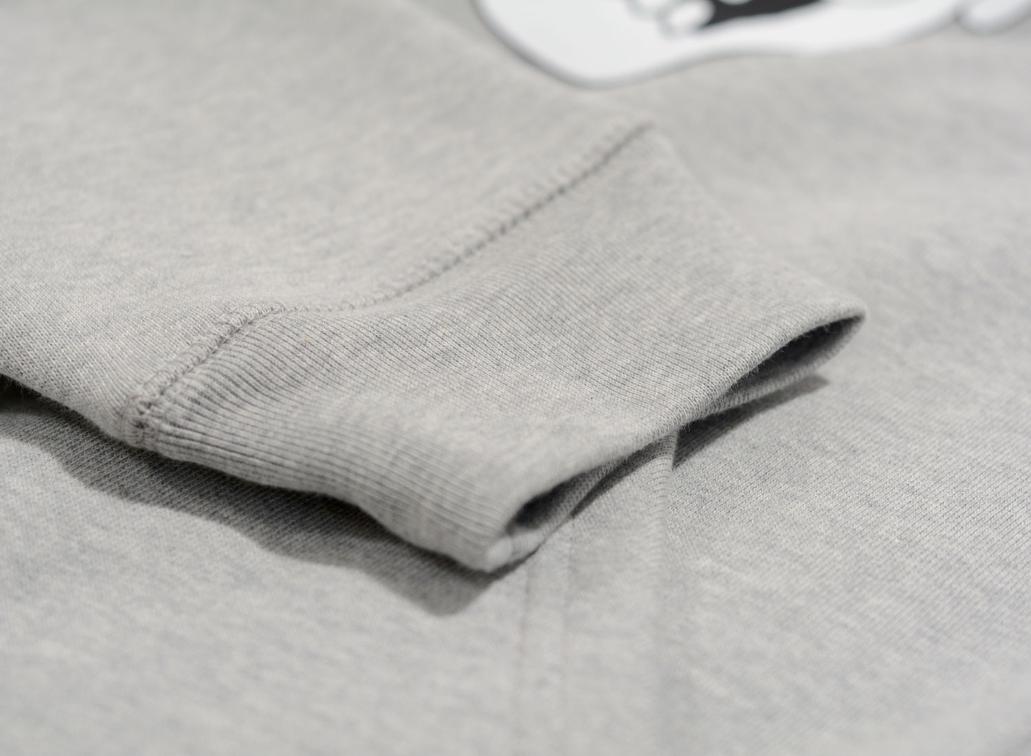 Skull Hooded Sweater Melange Grey. Hooded sweatshirt made from 450gr cotton fleece fabric. Regular fit. Front print. Ribbed cuffs and hem.