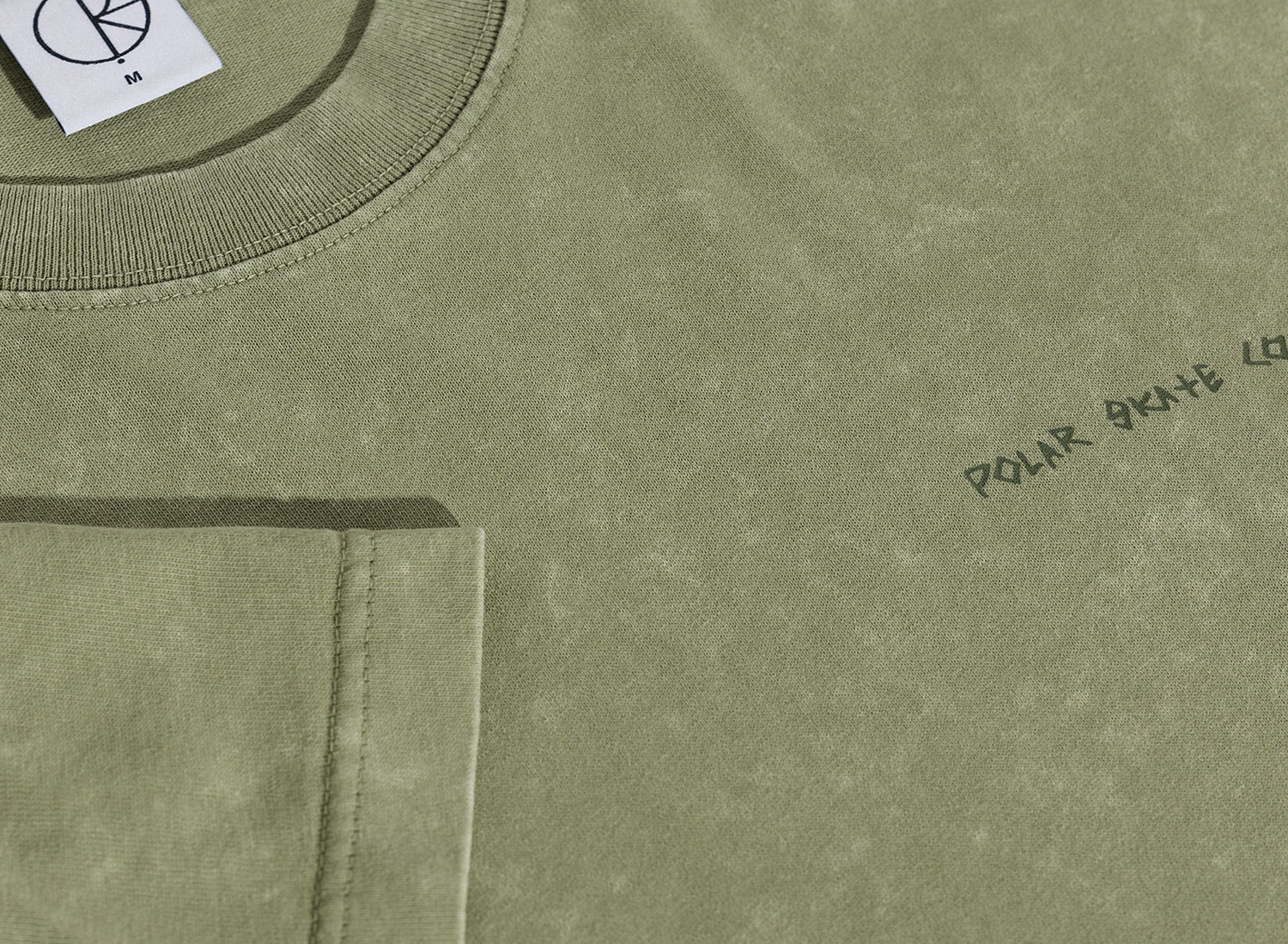 POLAR SKATE CO Acid Tee IOTIT Army Green. Loose-fitting T-shirt made from 100% cotton. POLAR lettering on the chest and logo on the back.