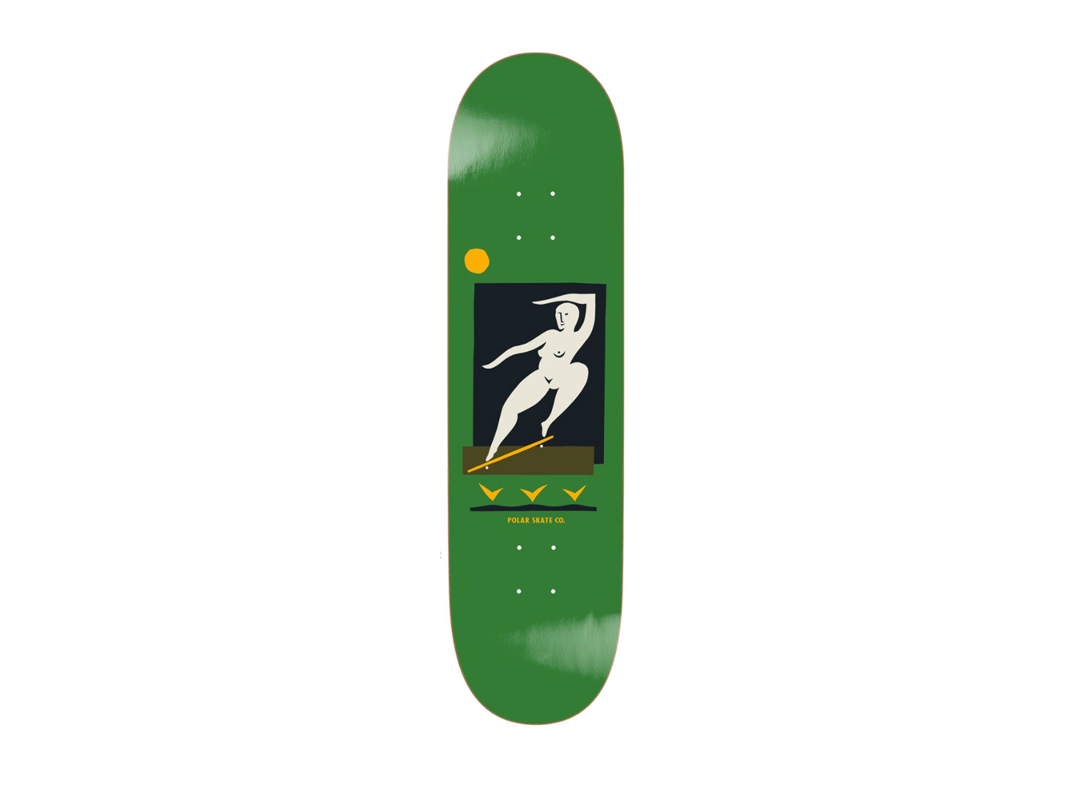 POLAR SKATE CO Team BS Smith Green. Board made of 7 layers of North American maple hardwood. High concave. Shape Square. Full Pint. Delivered with a free HAZE creep microperforated grip. If you wish the board to be griped, please let us know in the comments of your order. Size : 8.25