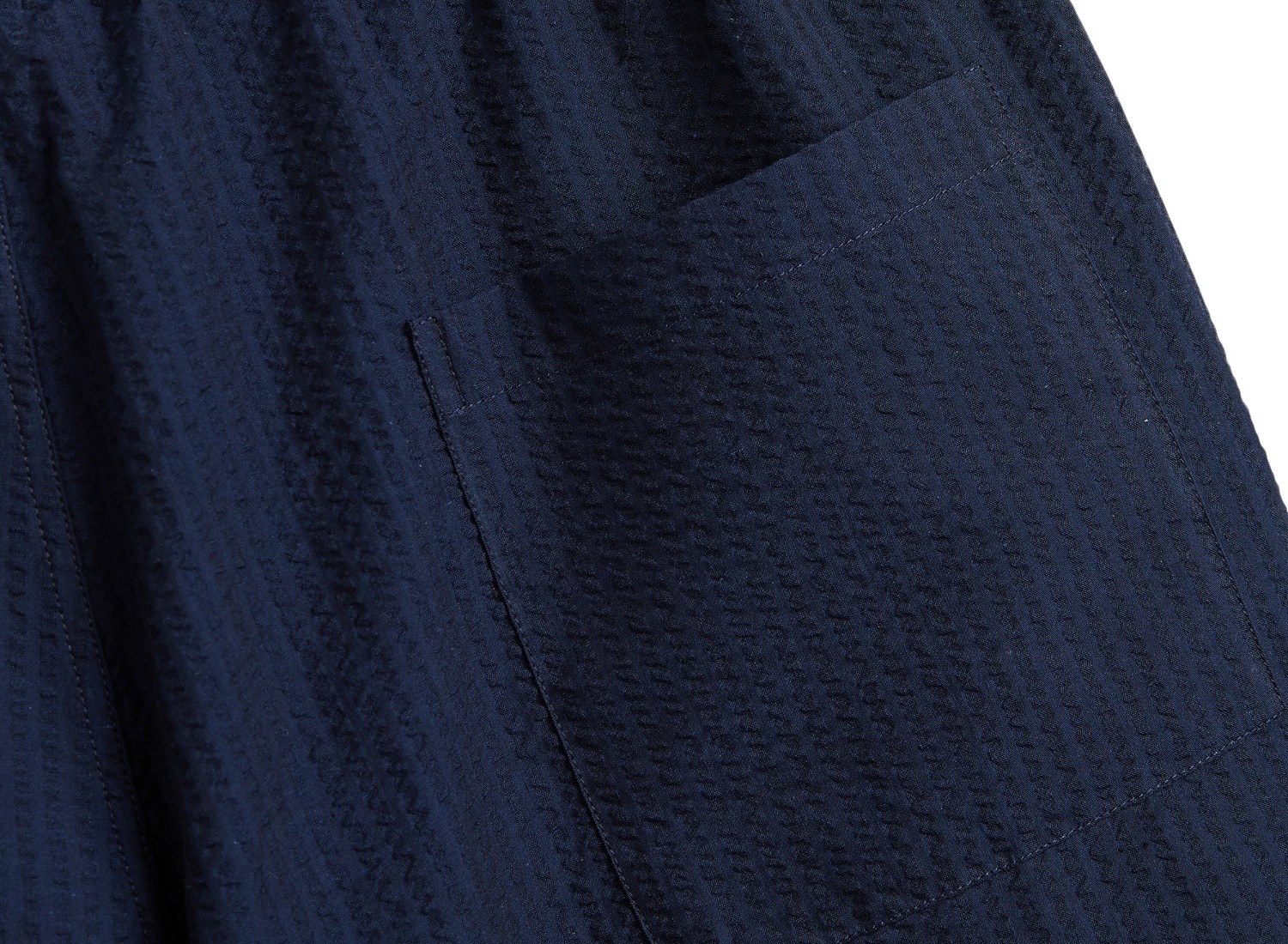Regular-fit shorts in lightweight, textured 100% cotton seeruker fabric. - Knee-length. - Elastic waistband with drawcord. - Side pockets. - One patch pocket on back.